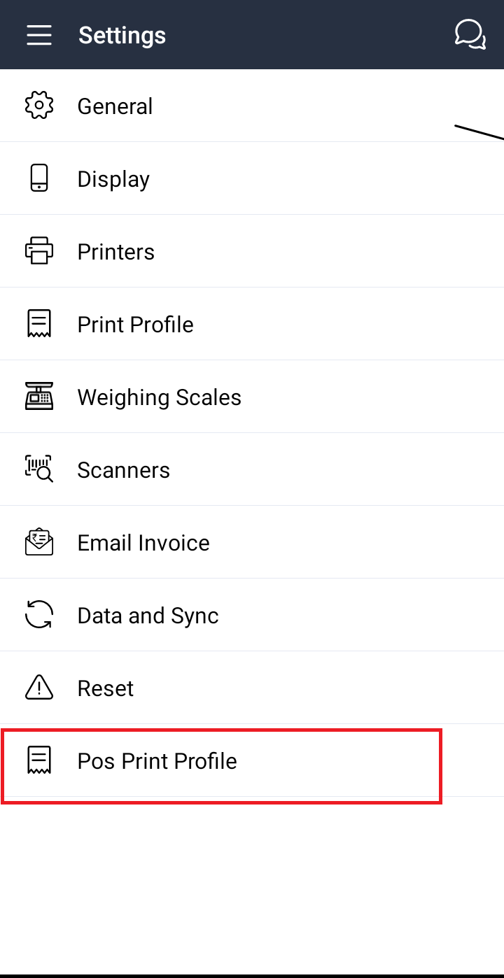 Settings->POS print profile->Select Pos Print Profile