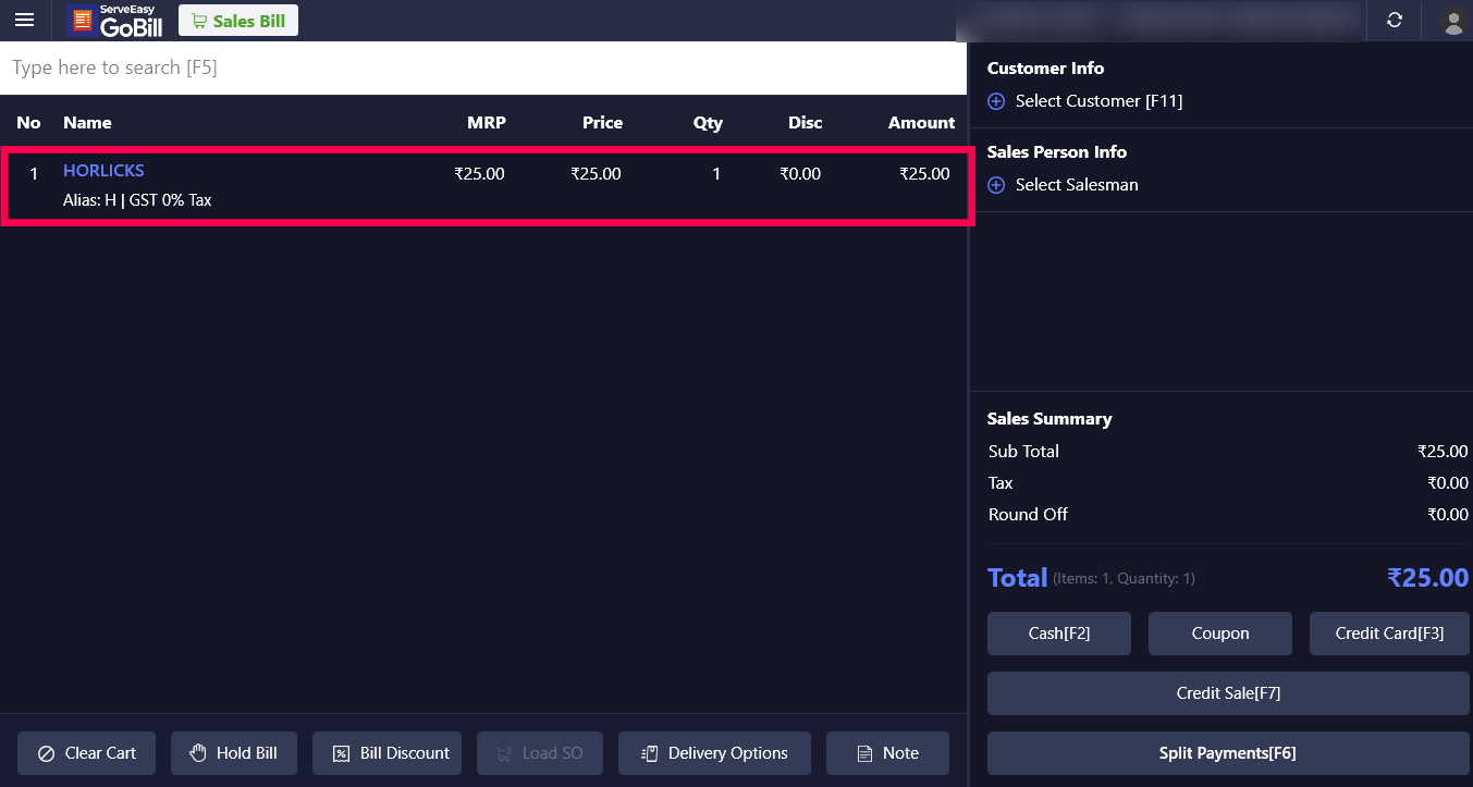 Thus, the bill discount for specified customers applies automatically right in the GoBill if it is synced with RetailEasy. You can now checkout with a discounted bill and proceed with payment.