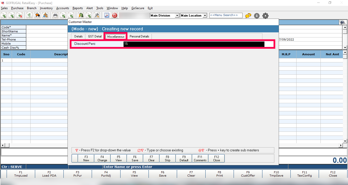 - Enter the discount percentage you want to offer the customer in the "Miscellaneous" menu