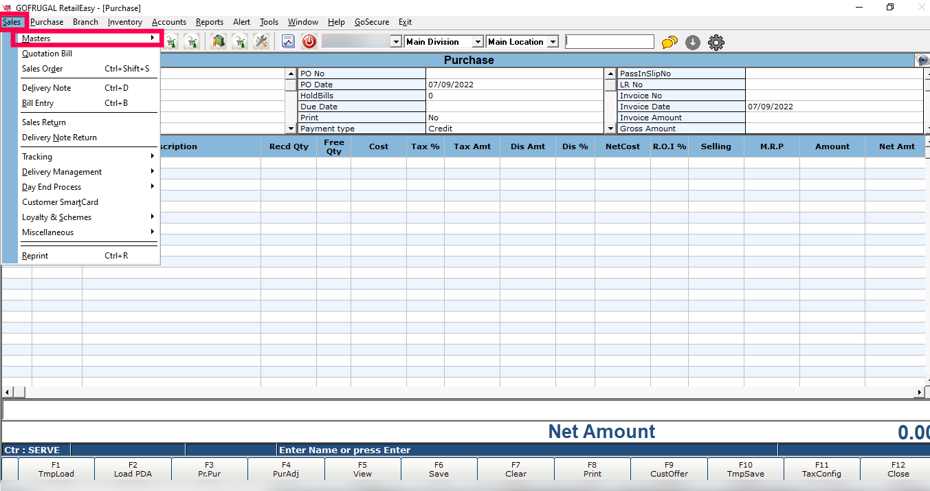 - In RetailEasy click on the "sales menu" where you can see "Masters" in the drop-down box