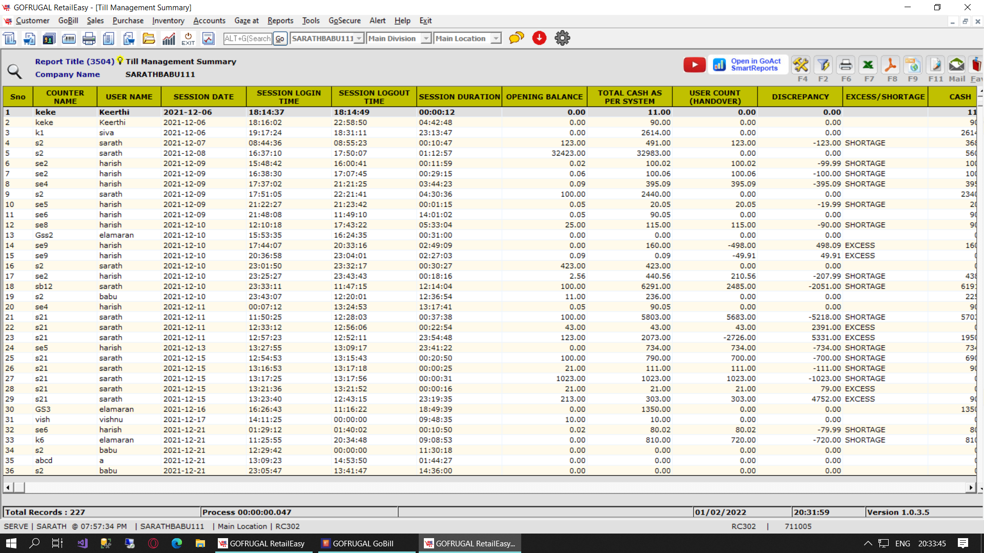 Session Management prevents mishandling of cash at the billing counters and eliminates cash discrepancies completely