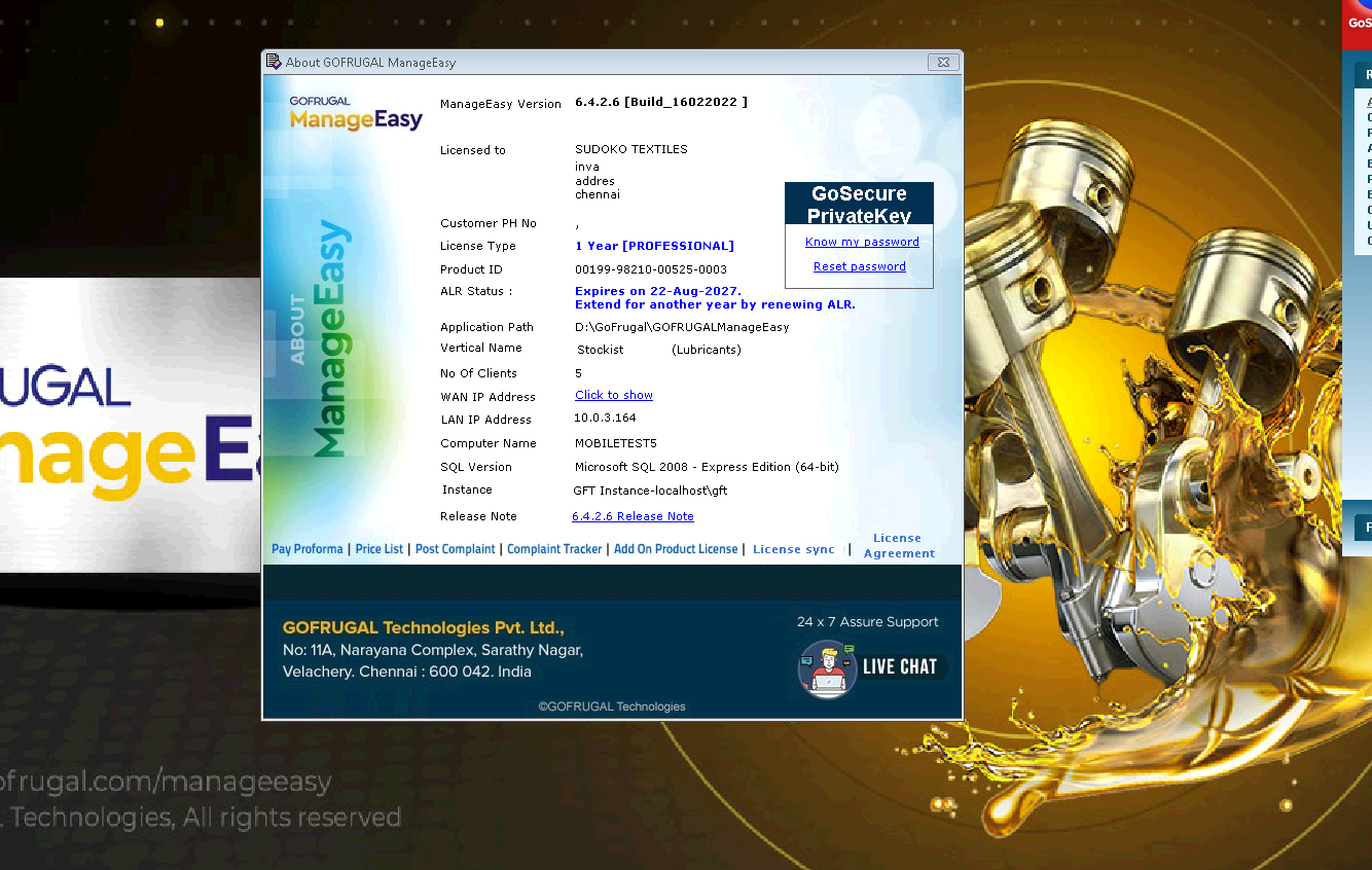 1. Open the POS in server and go to the Help-->About GOFRUGAL ManageEasy