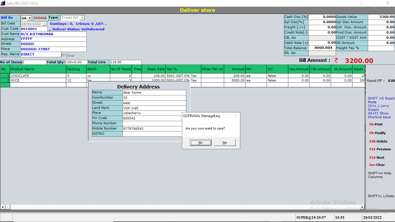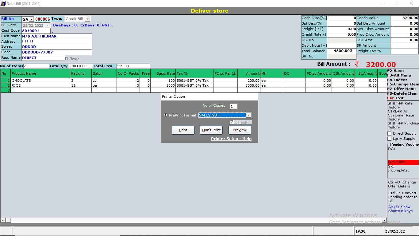 Step 5 : Click on enter and select the option as print or don’t print or preview based on need. To enter the shipping address of the delivery select "ShIft+D".