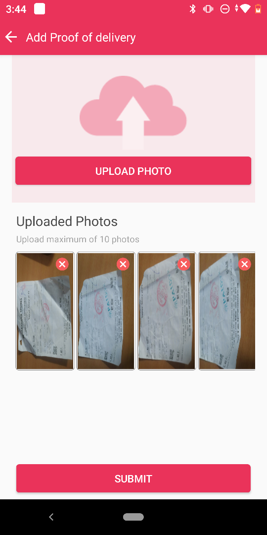 4. Delivery boys will have the provision to attach a maximum of 10 photos. Once the photos are attached the delivery boy can save the proofs by clicking on "Upload photo"