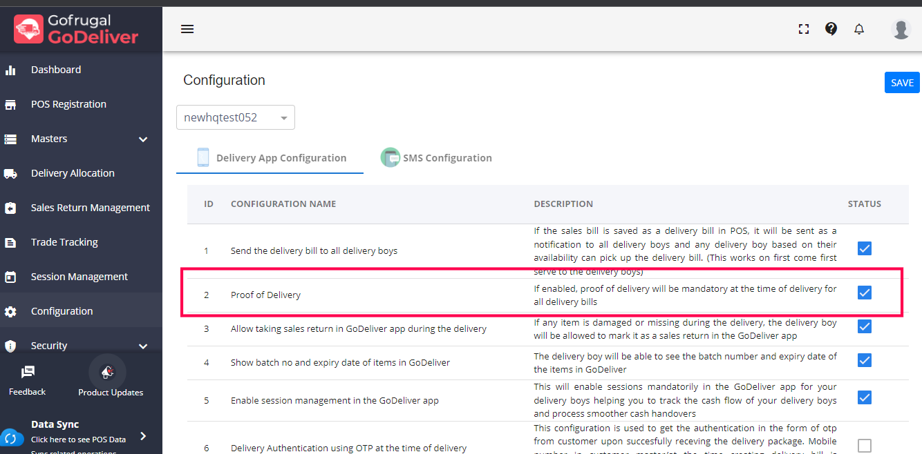 1. Enable the Configuration "Proof of Delivery" under configuration in Delivery App configuration.