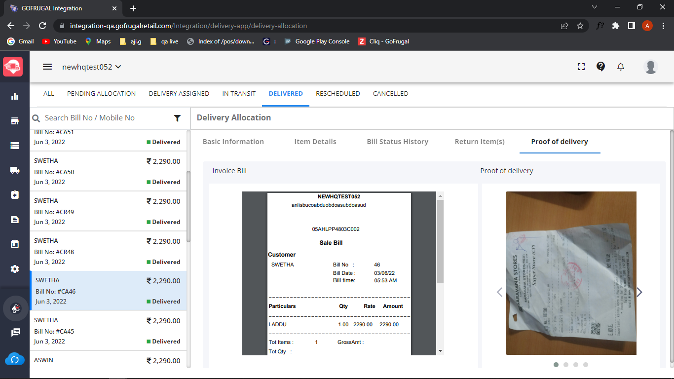 5. The attached proof of the deliveries can be verified or viewed as proof whenever needed under the "Delivered section" in Delivery allocation and also in the "Day book" by clicking the attachment icon in your POS.