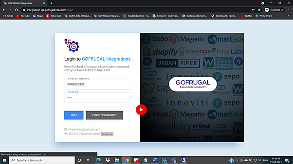 Now you can experience multi-login by opening the integration portal and log in to it using the user id (email id or mobile no.) and password which was entered while creating the user in your POS. (Use the same credentials as the POS user login)