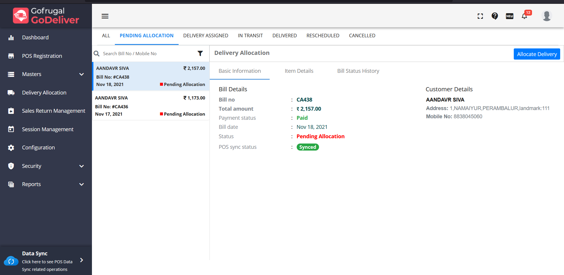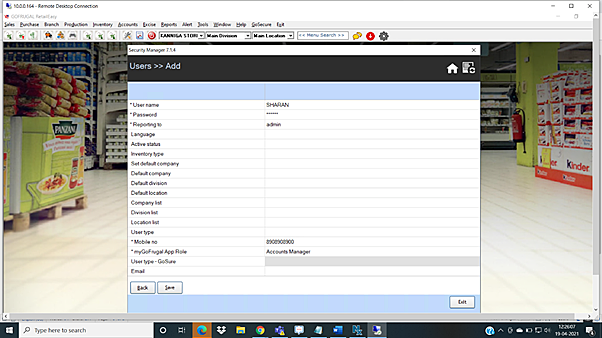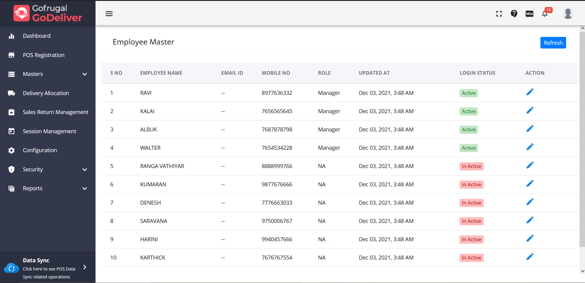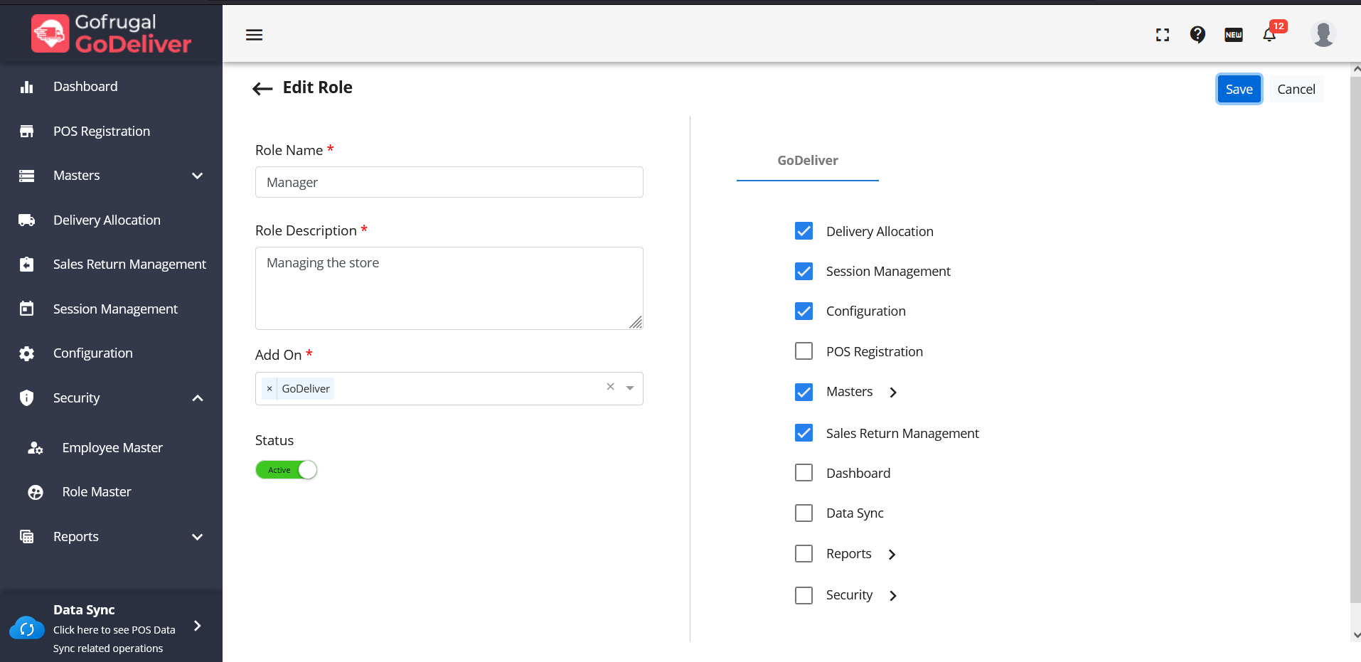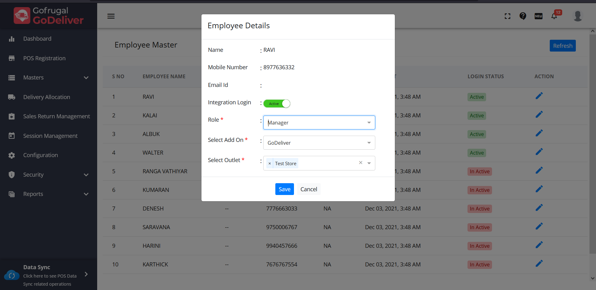 Now click on the GoDeliver addon and navigate to the Security menu -> Security -> Employee Master screen.