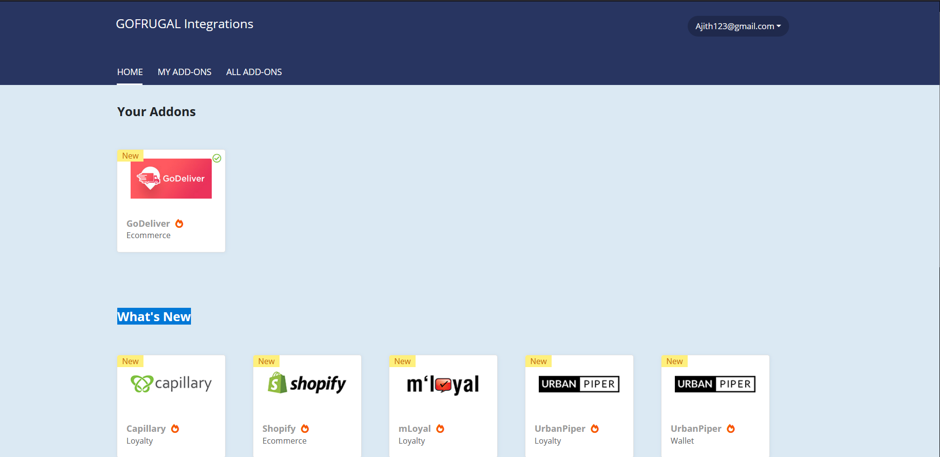After successful login of the integration portal, only the addons and menu pages that were made accessible to that user will be displayed.