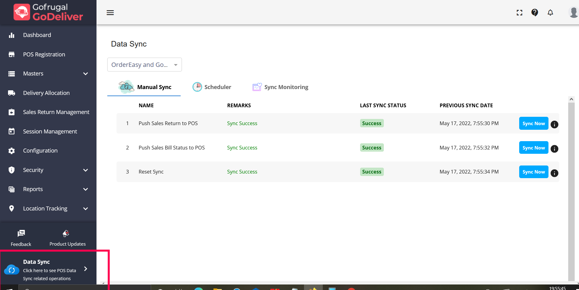 Step 5: Once you have done the new outlet setup, Data sync is required. Go to Data Sync and Click on "Sync now" for all entities.