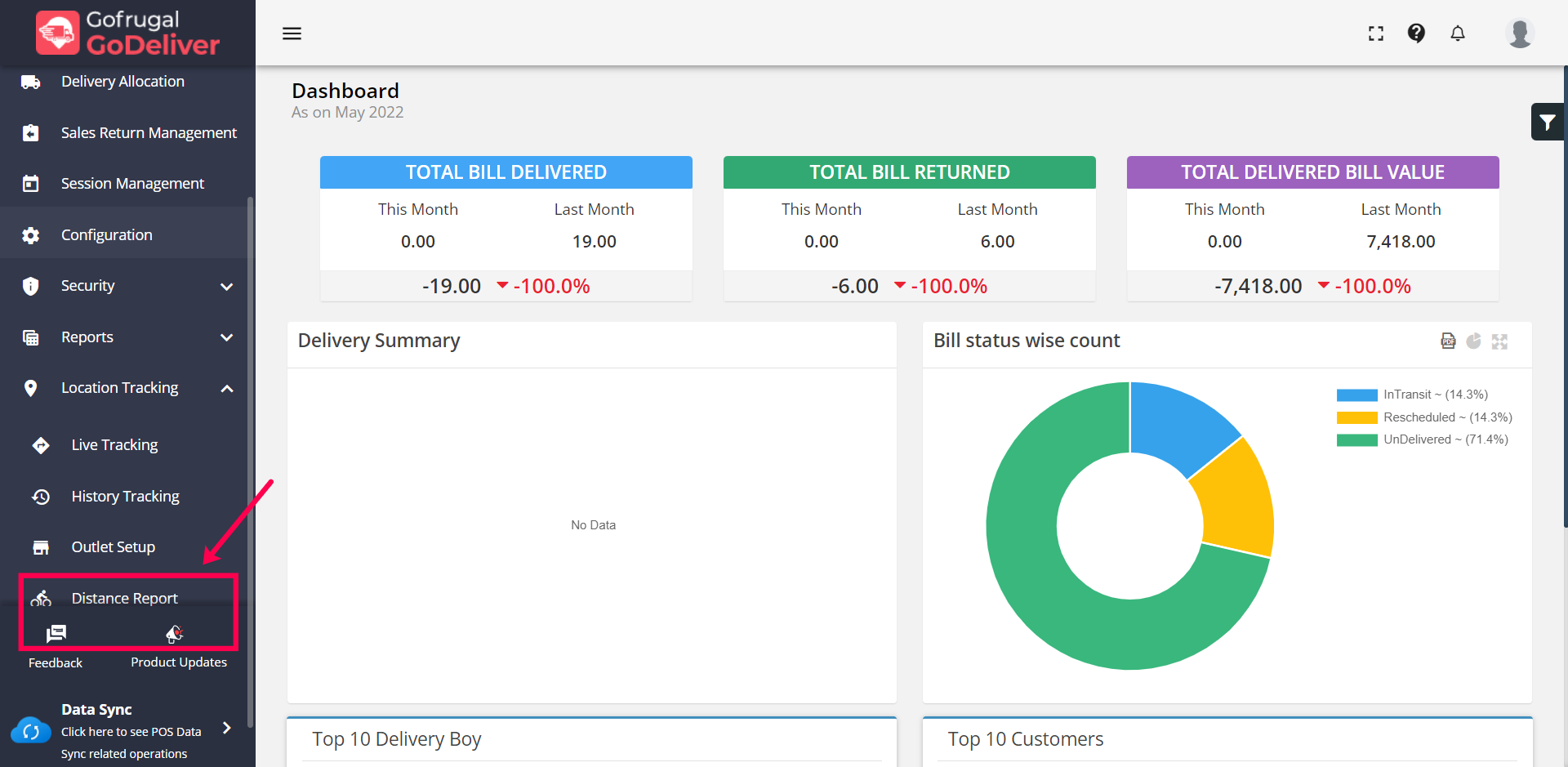 1. Select the menu "Distance report" under the location tracking menu