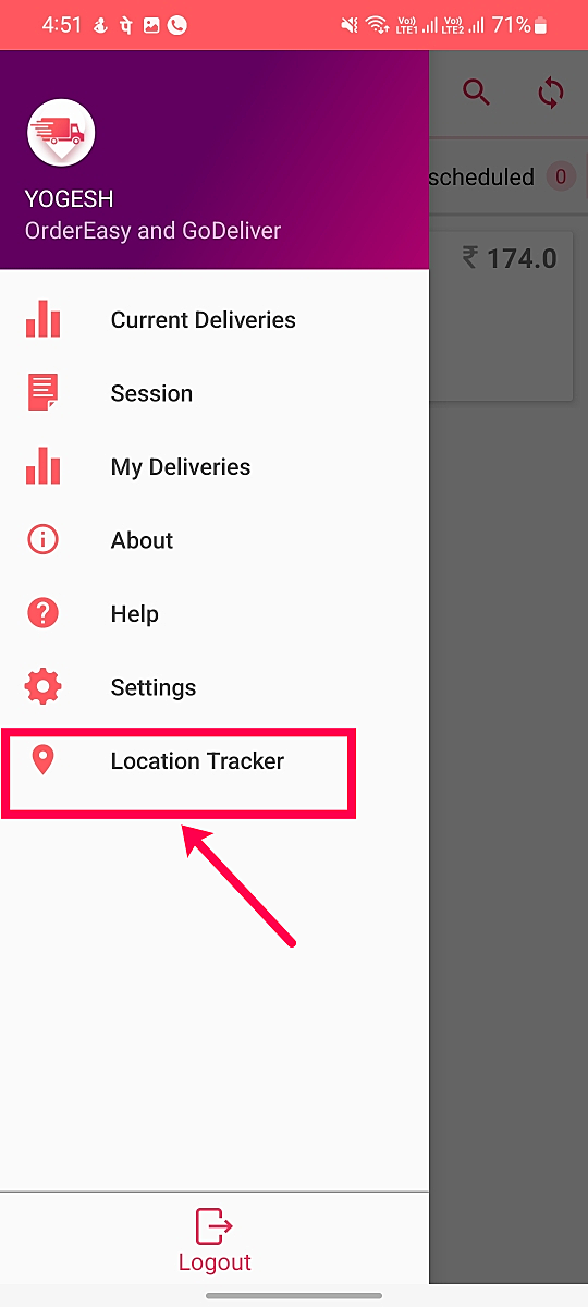 1. Get your delivery boys to update the GoDeliver app to the latest version from the playstore and login to the app