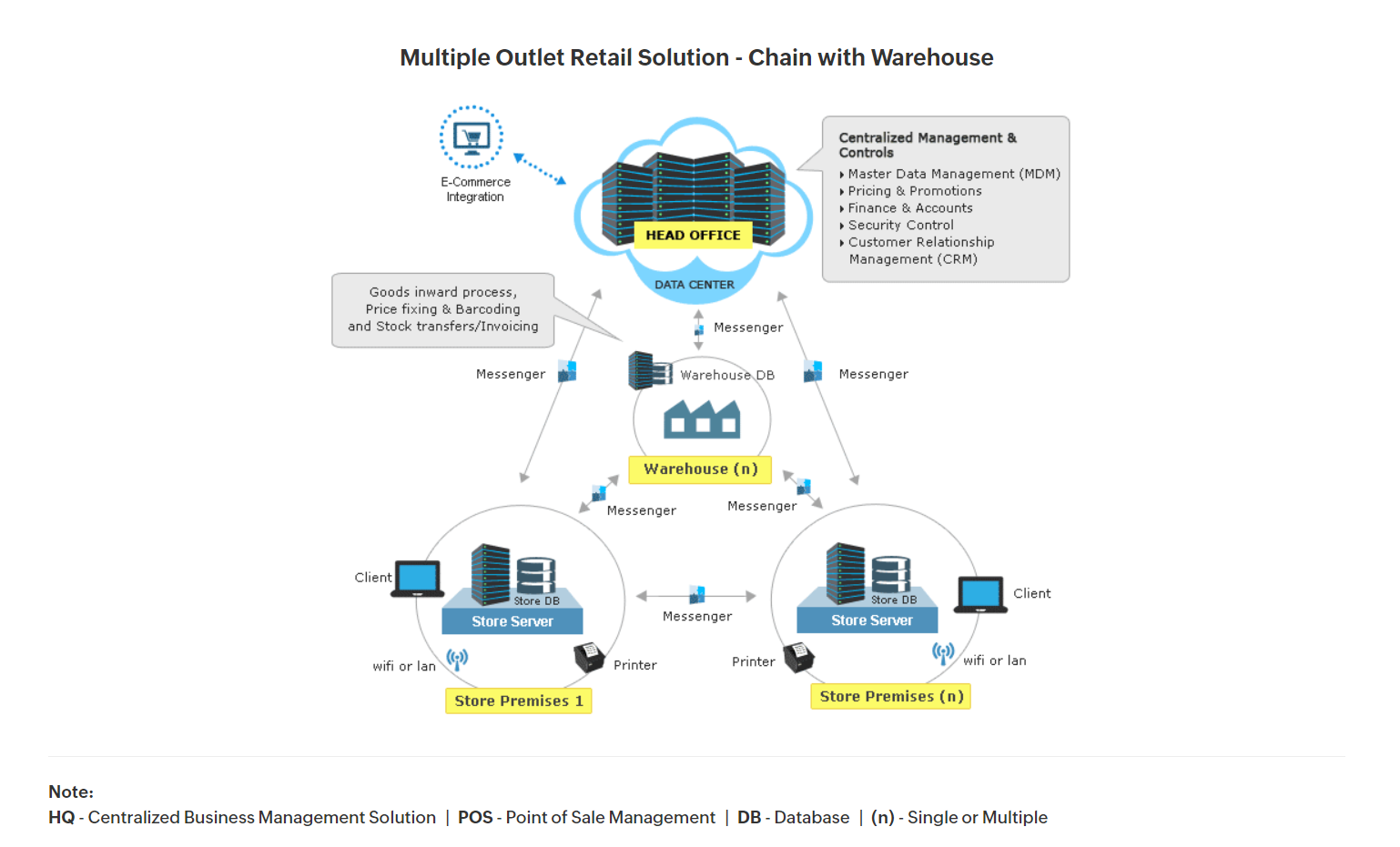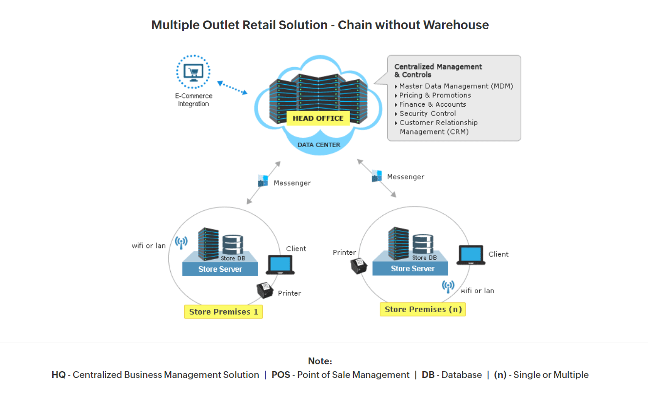 Centralized security – Ensures centralized control over security for both headquarters and outlets.