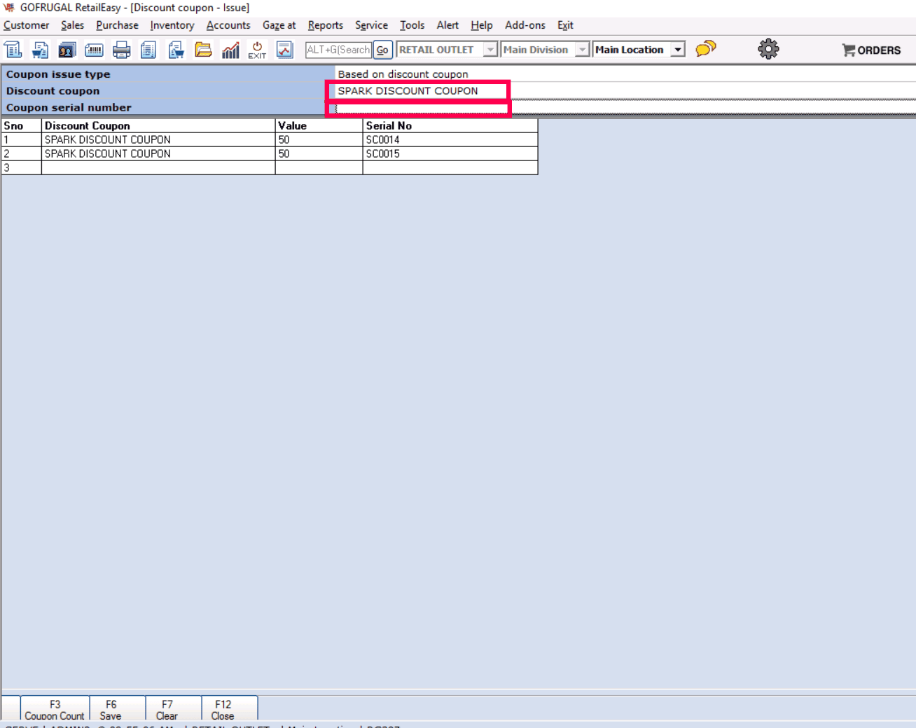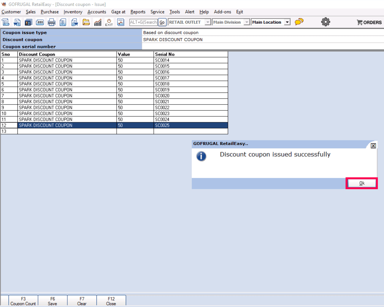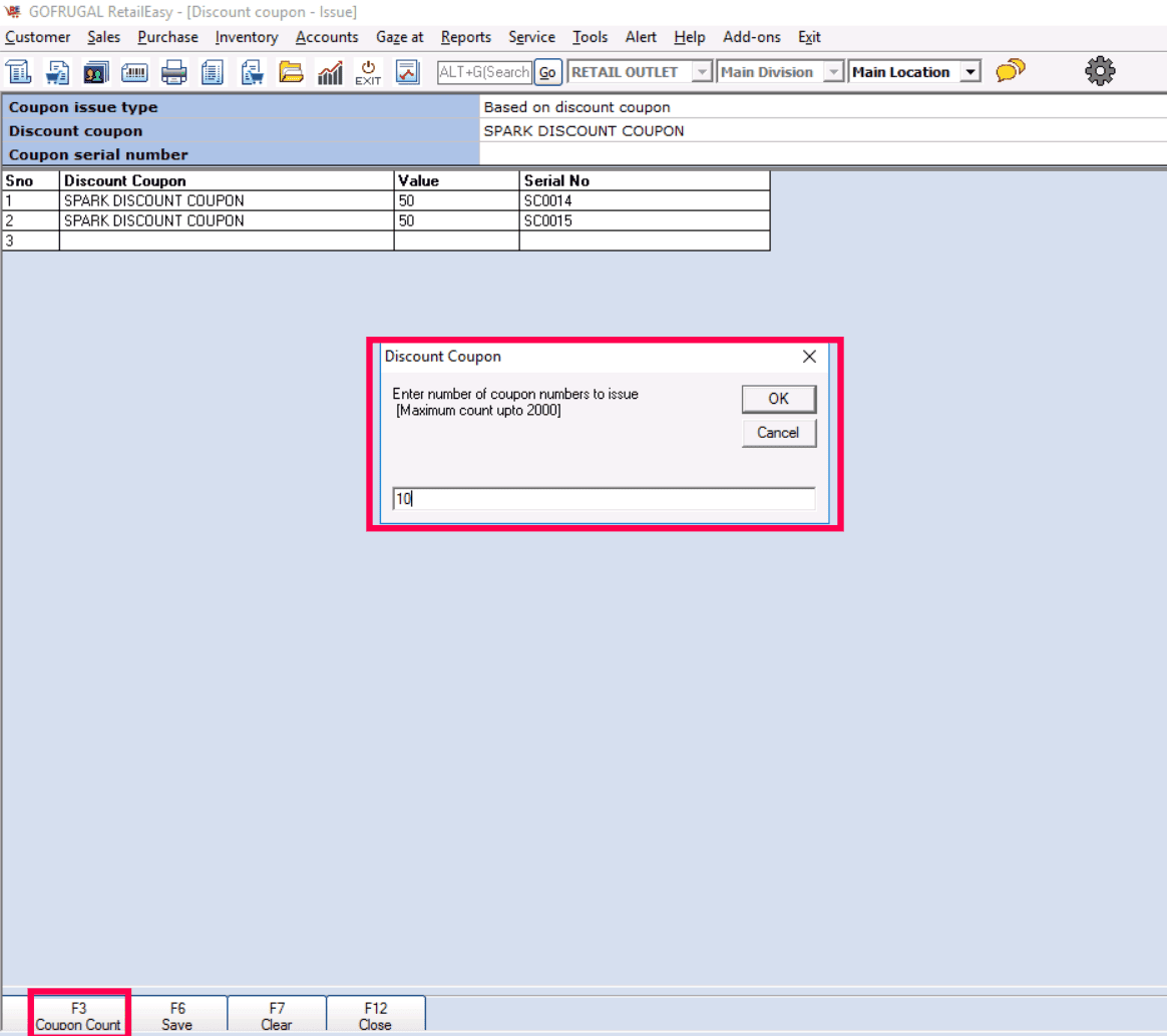 If you want to issue more numbers, click the F3 Coupon count button, then add the number of coupons you want to issue.