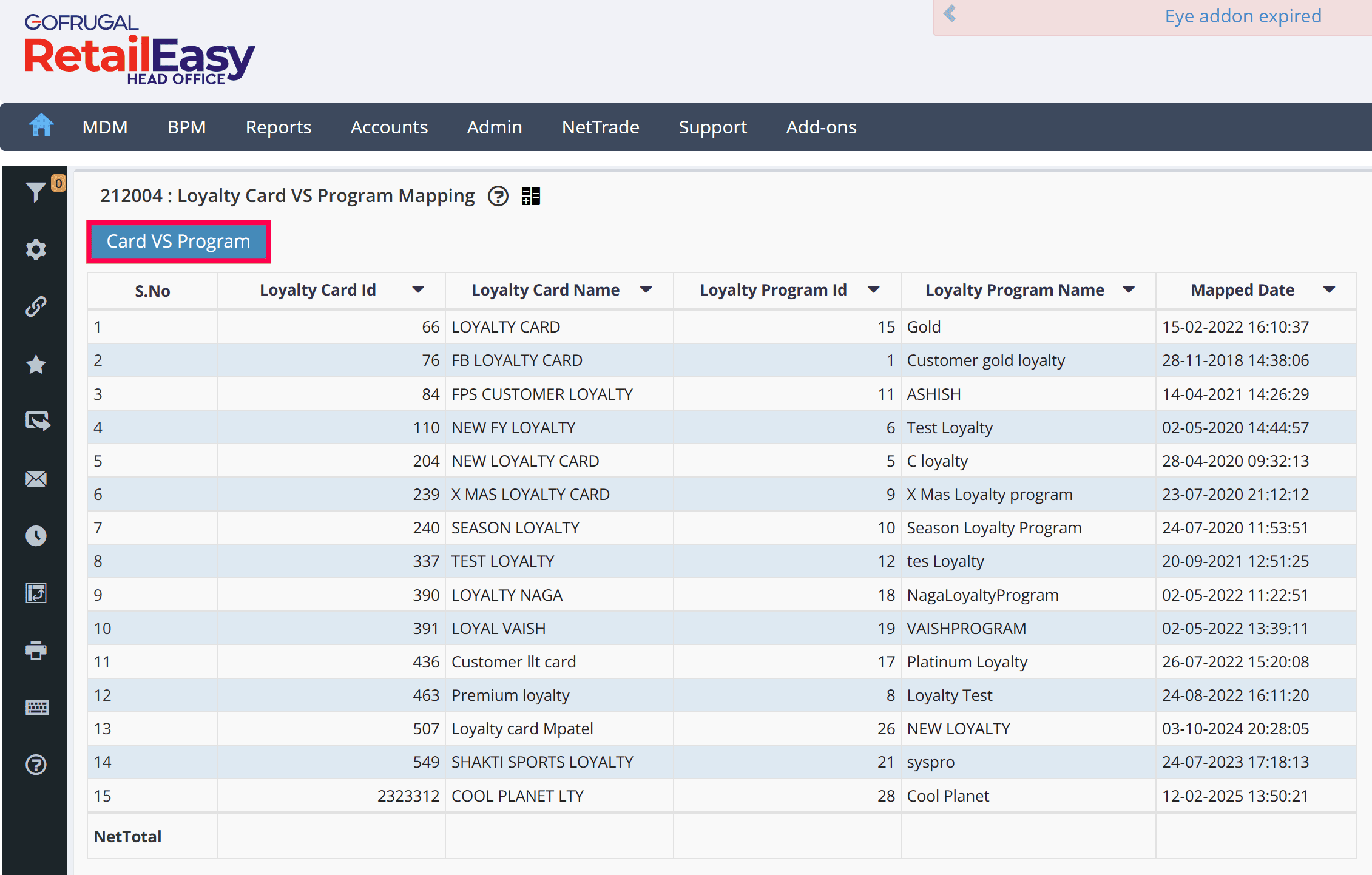 Utilize the Loyalty Card VS Program Mapping interface to associate the loyalty card with the corresponding loyalty program.