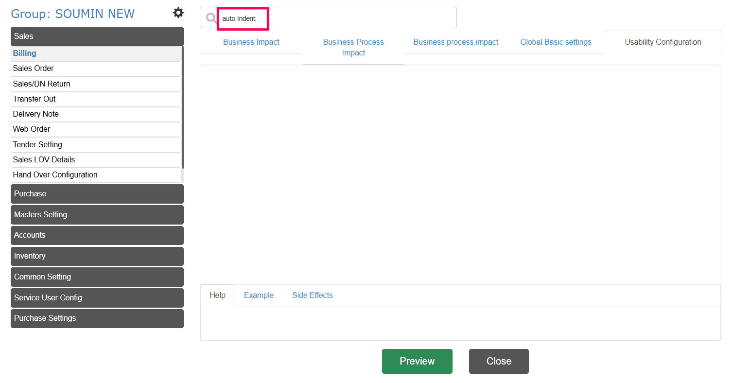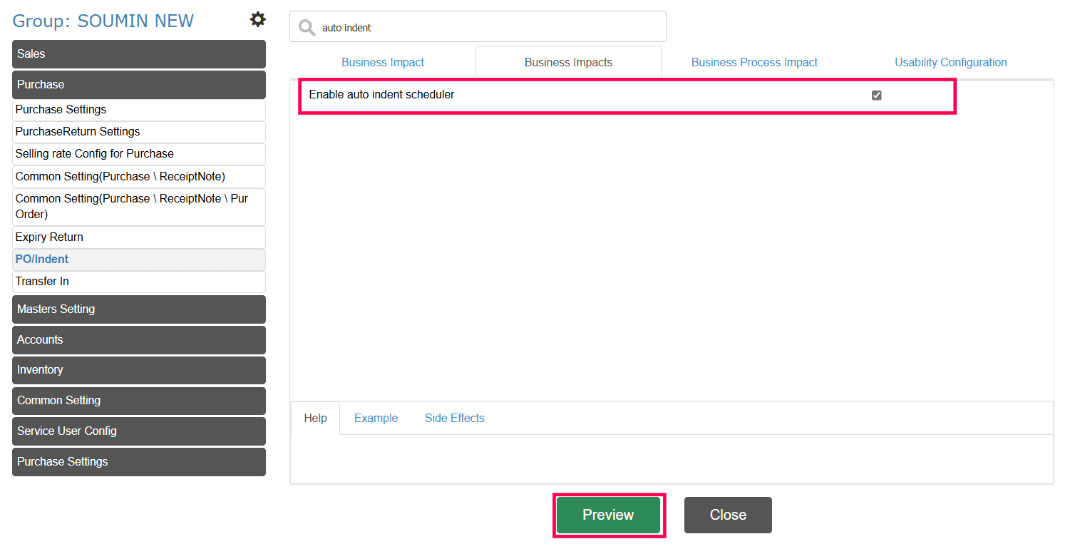The following section explains the configurations required to enable the Auto Indent process in the Branch Server POS.