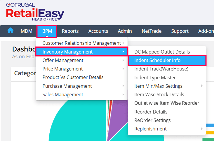 Navigate to BPM > Inventory Management Indent Schedule Info.