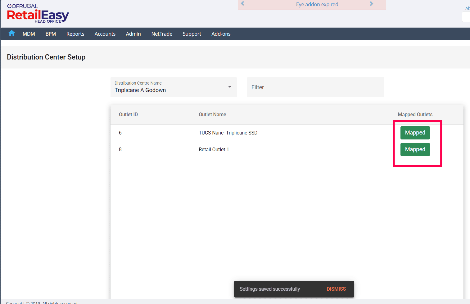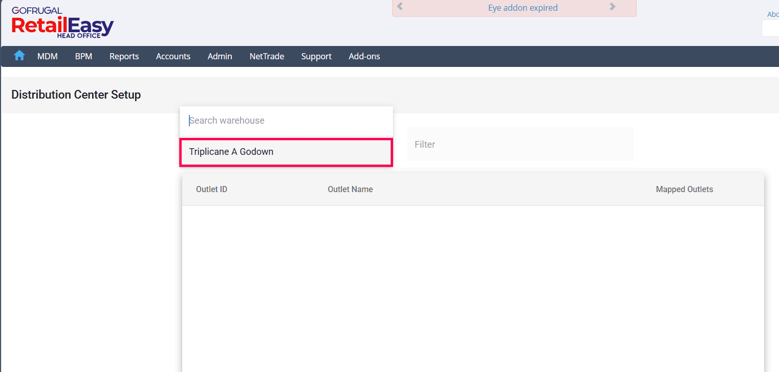 Warehouse Mapping: Associate outlets with specific warehouses or distribution centers (DCs) to ensure proper stock flow.