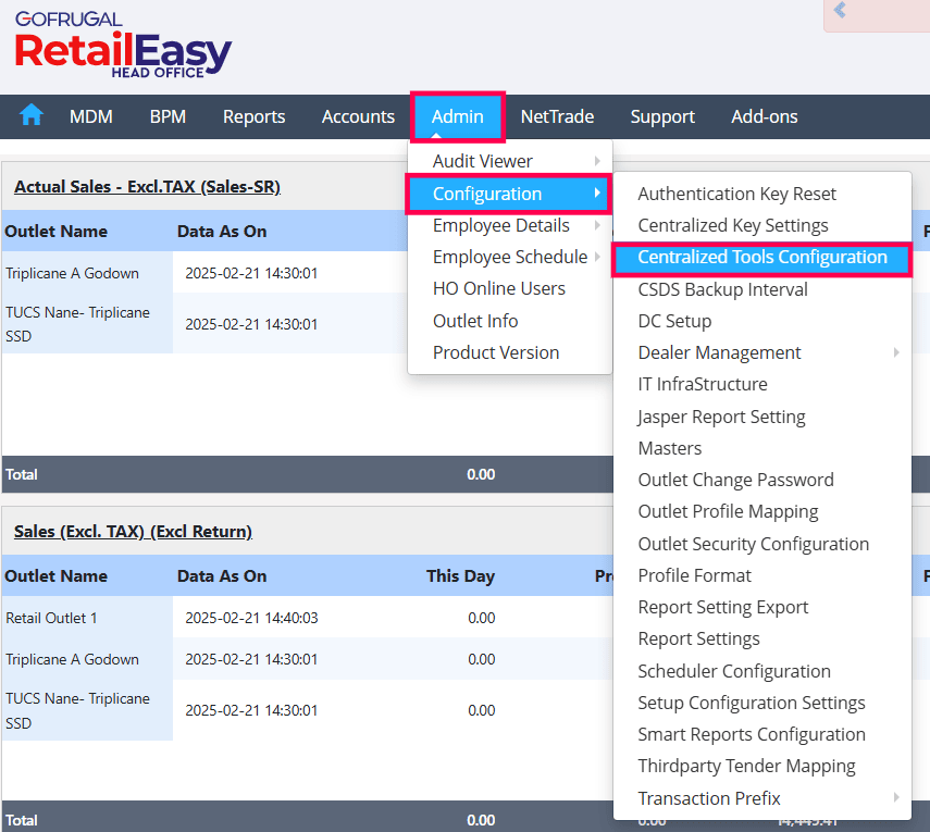 Open HQ and navigate to Admin > Configuration > Centralized Tools Configuration.