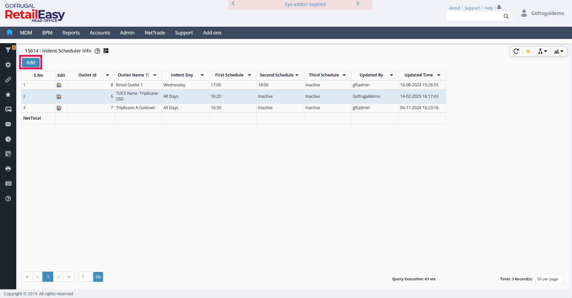 Gofrugal HQ is a head office solution designed to manage and streamline various business operations, especially for retail chains. The Indent Scheduler Info refers to the Auto Indent Replenishment process within Gofrugal HQ, which automates stock reordering to maintain optimal inventory levels.