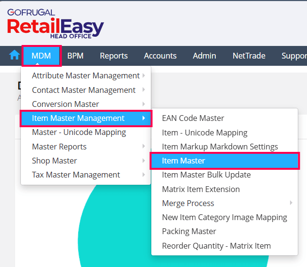 Open HQ and navigate to MDM > Item Master Management > Item Master.