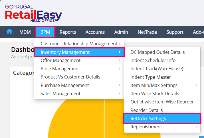 Open HQ and navigate to BPM > Inventory Management > ReOrder Settings.
