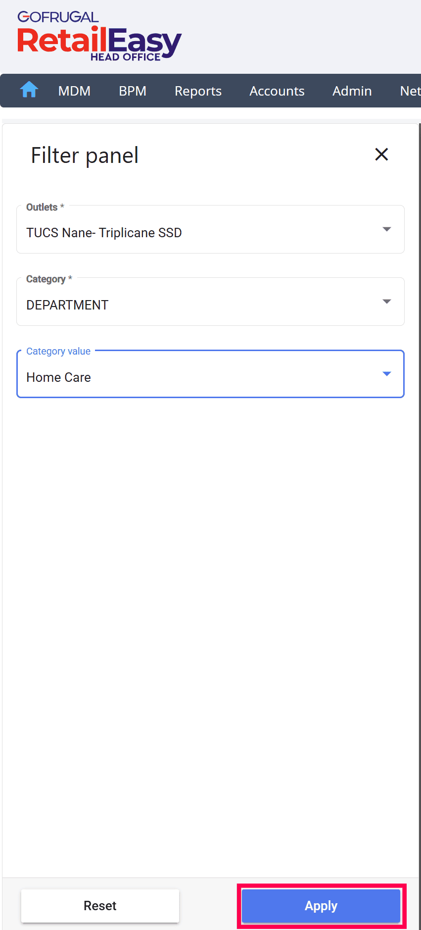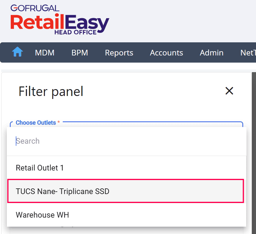 Select the required outlet from the Choose Outlet dropdown.