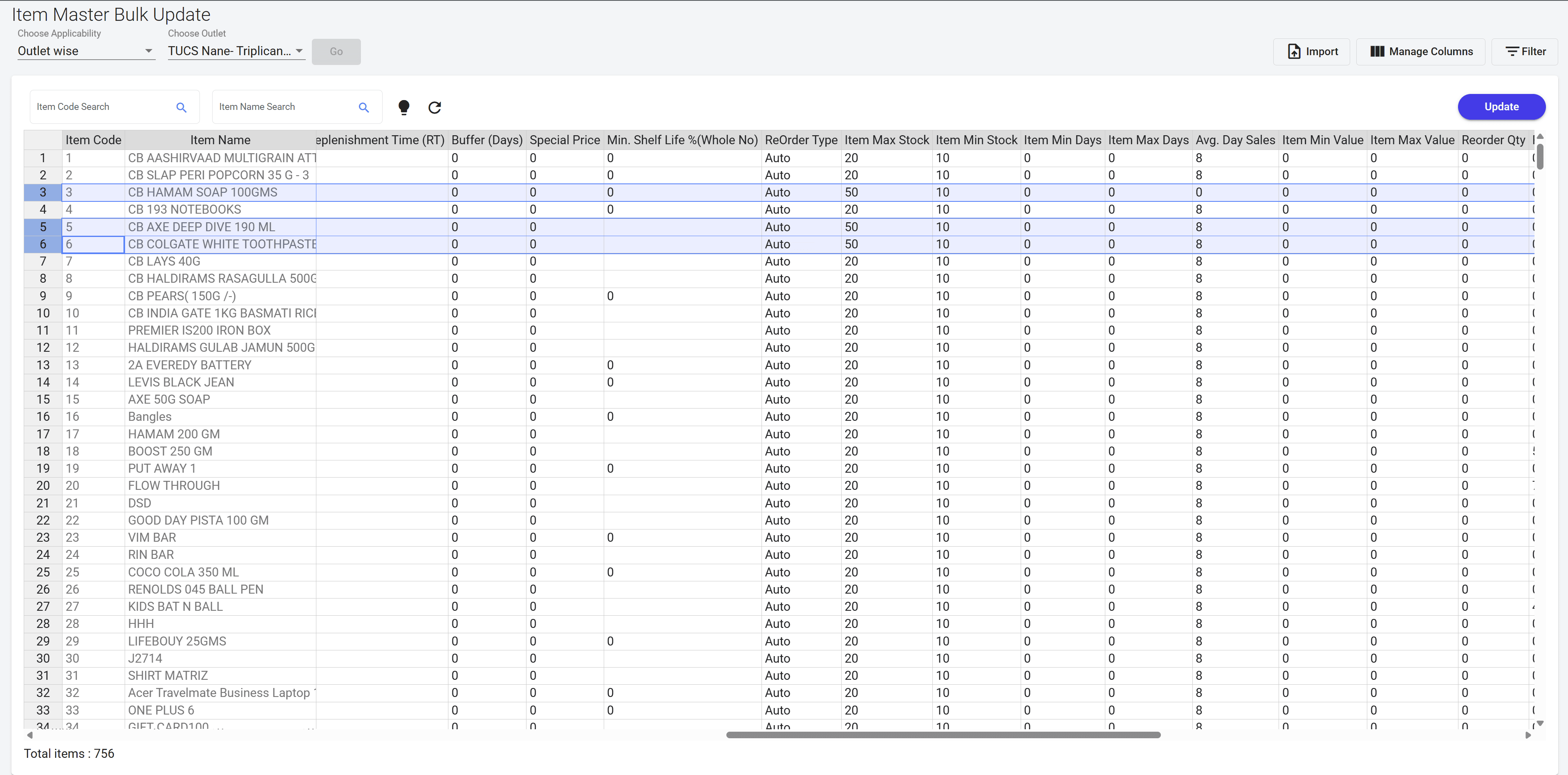 Item Min/Max Settings - Outlet Wise [HQ]