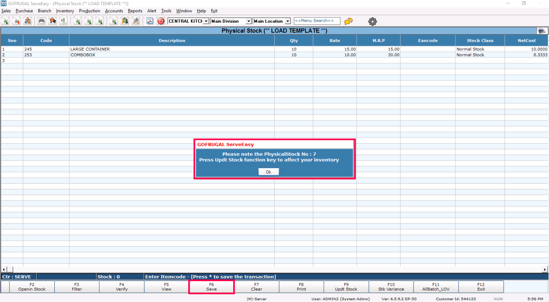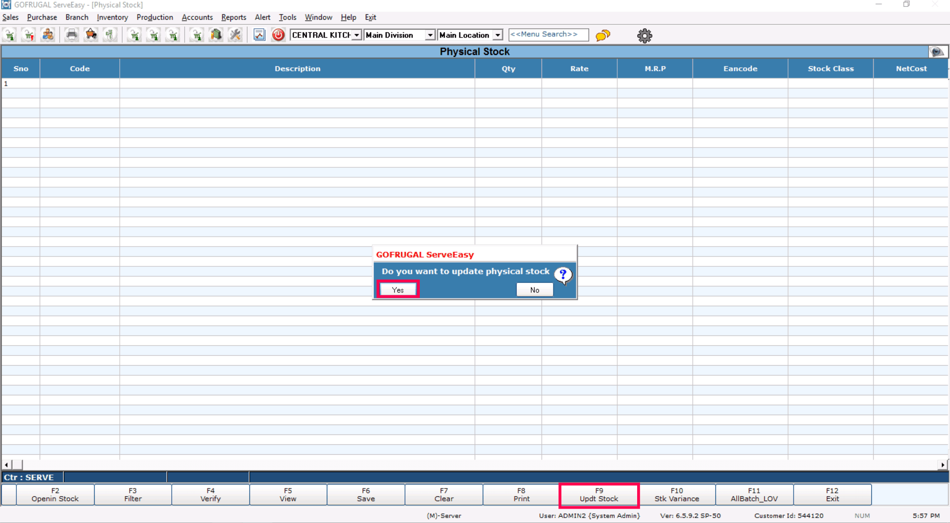 Click the F9 – Update Stock button, then click Yes to complete the stock update process.