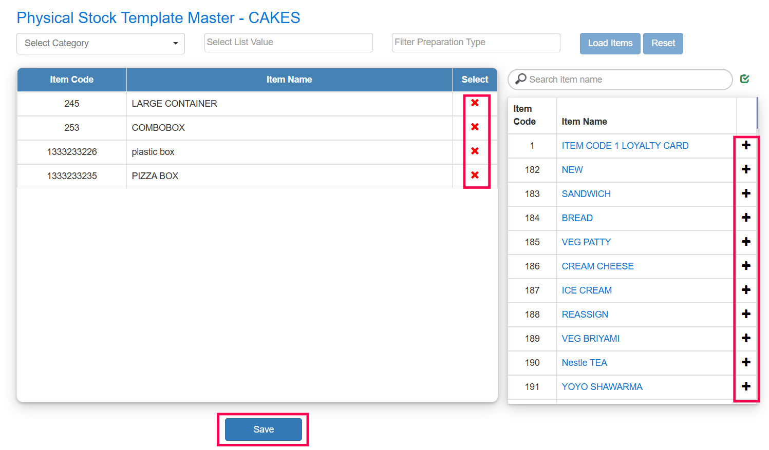 Click the Load Items button. All items under the selected category will be filtered and displayed.