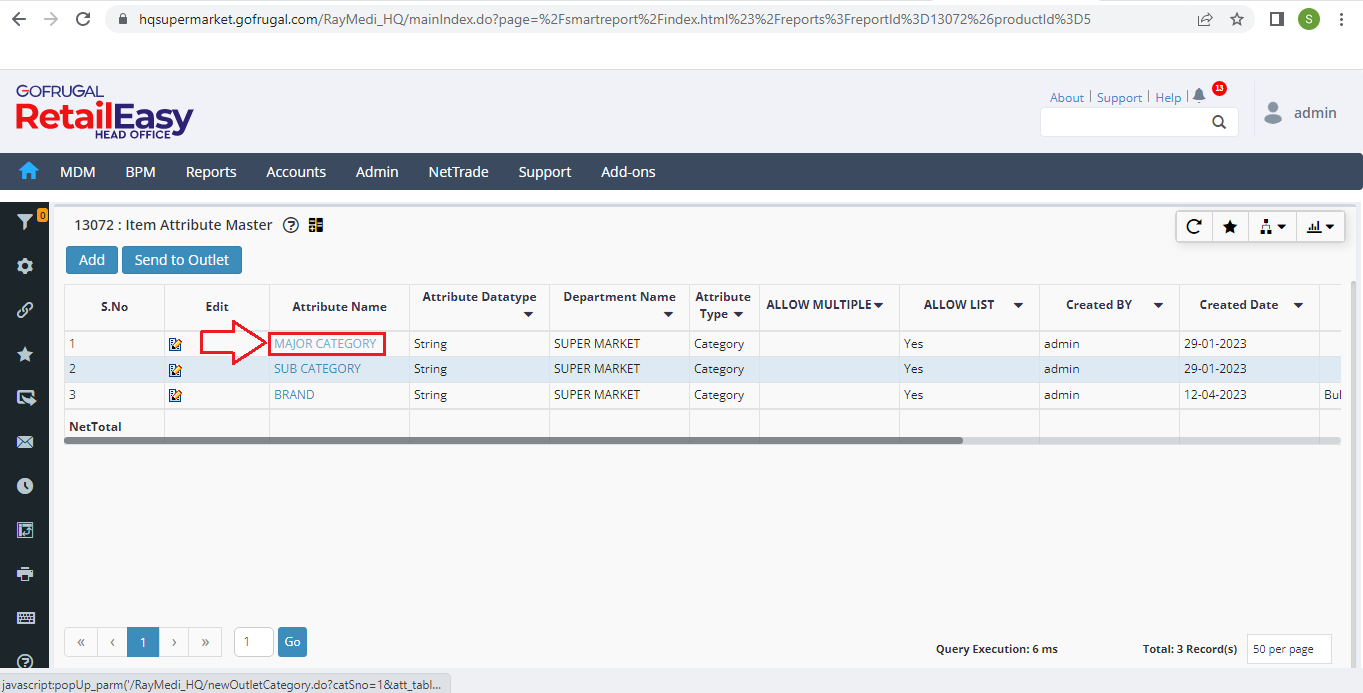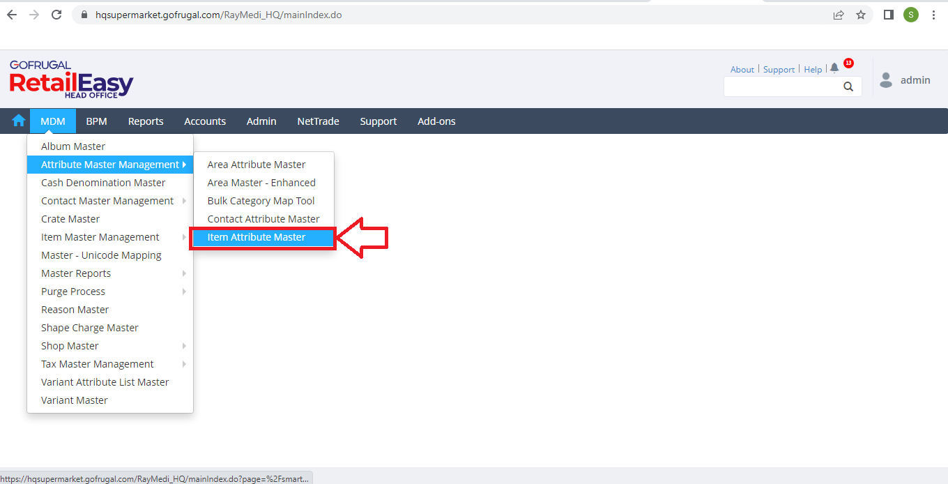 Step 1: Go to MDM > Attribute Master Management > Item Attribute Master.