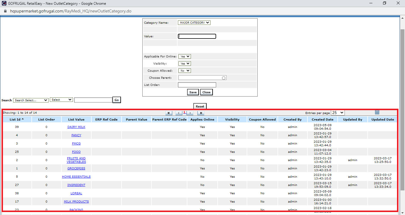 Step 3: Put the new List Value or the category name, Applies Online, Applicable to mobile device, Parent name and Visibility.