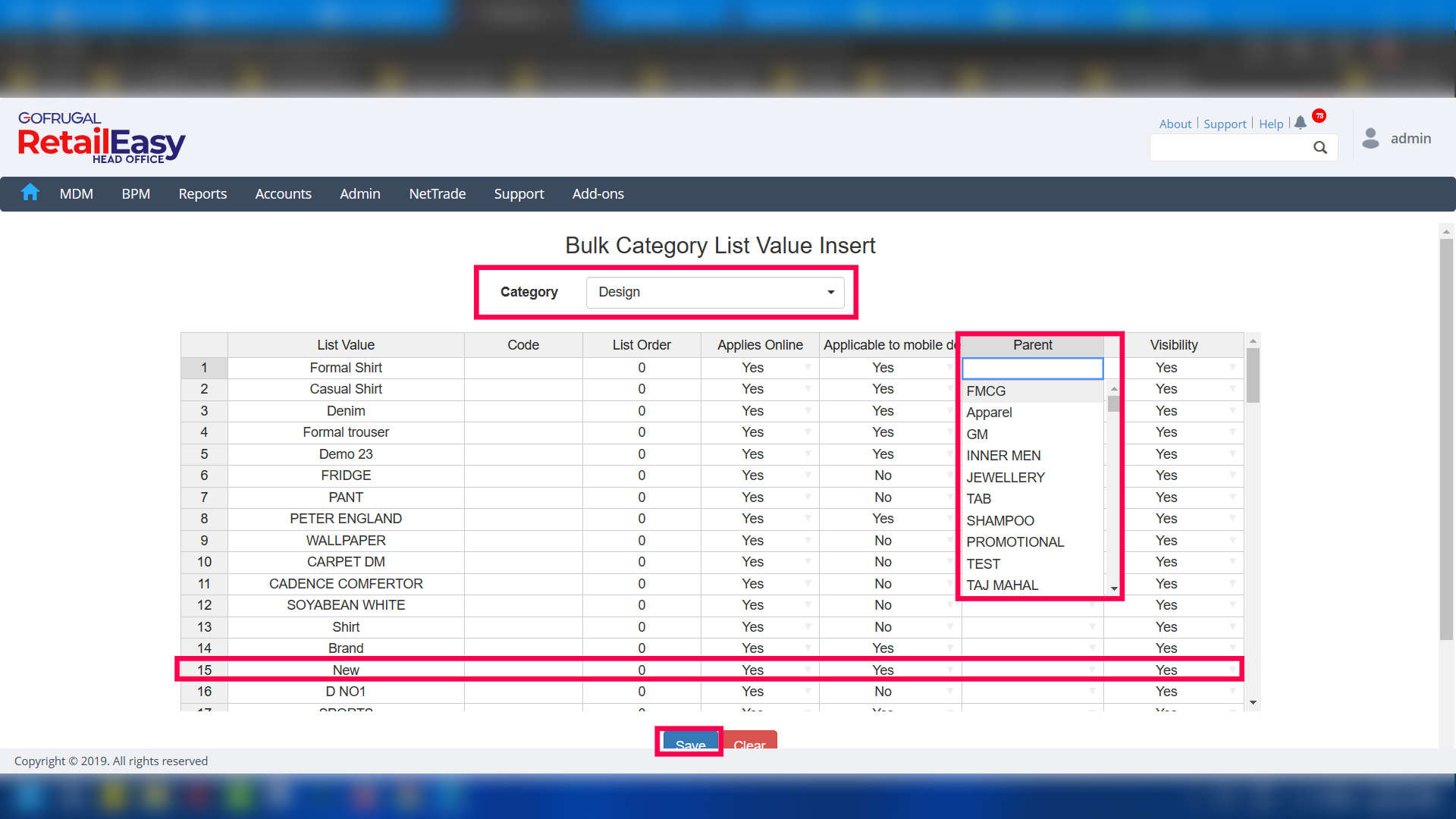 Step 3: Put the new List Value or the category name, Applies Online, Applicable to mobile device, Parent name and Visibility.