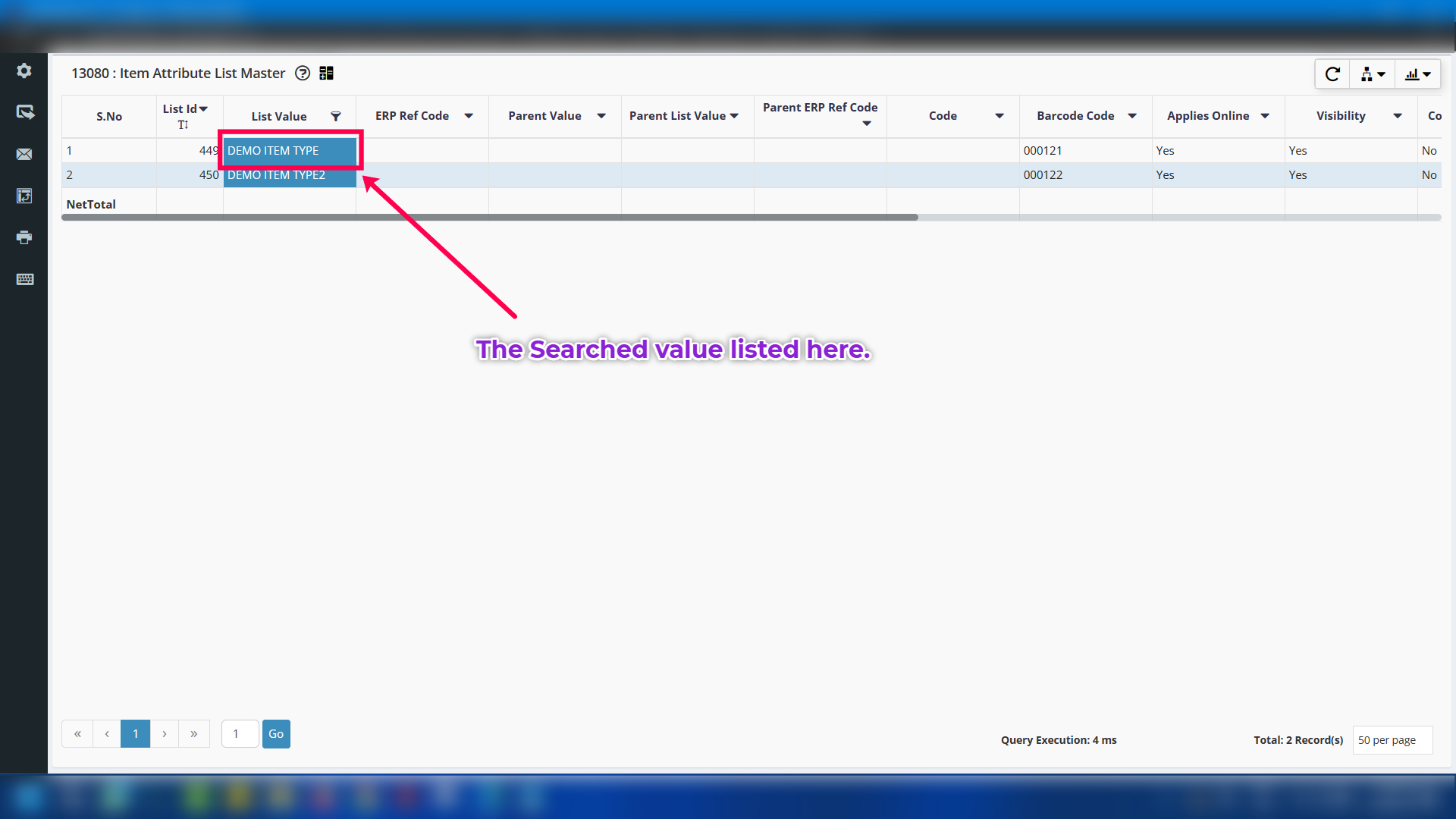 Step 4: Click on ITEM TYPE under Attribute Name to see the newly inserted category details.