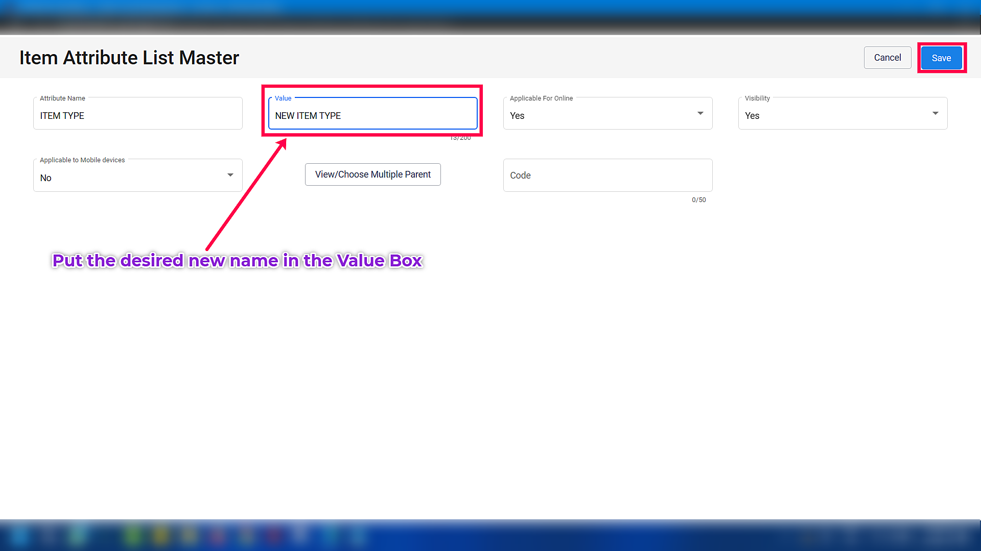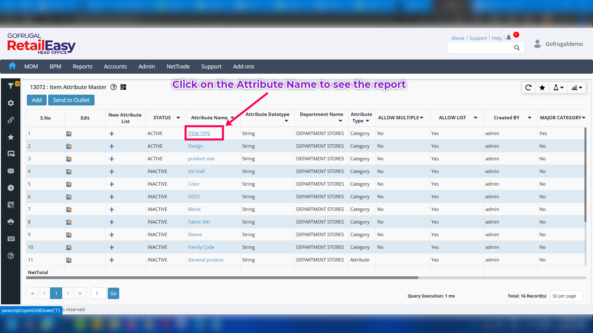 Step 1: Go to MDM > Attribute Master Management > Item Attribute Master.