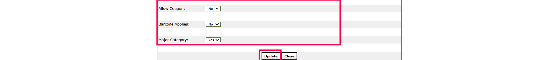 Allow Coupon = Select Yes or No as needed.
