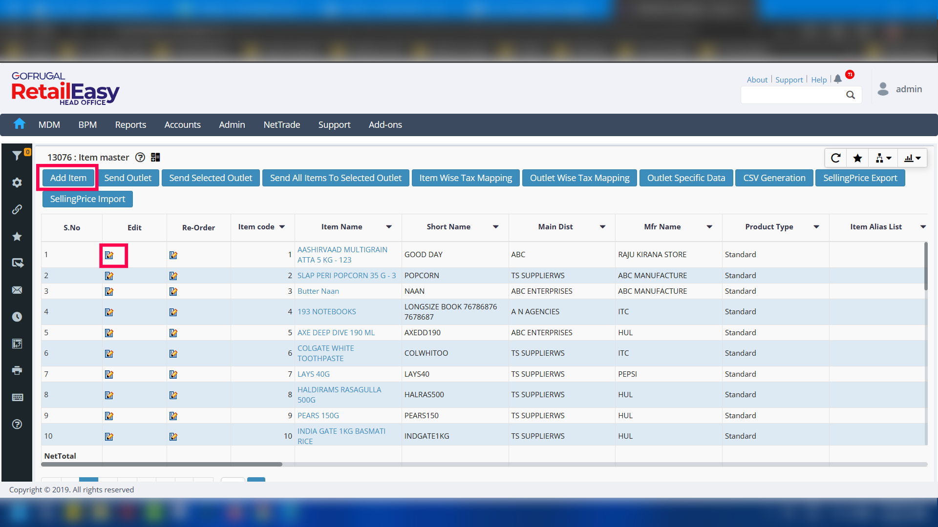 Step 2: Click on Add Item to add or Edit Button to edit.