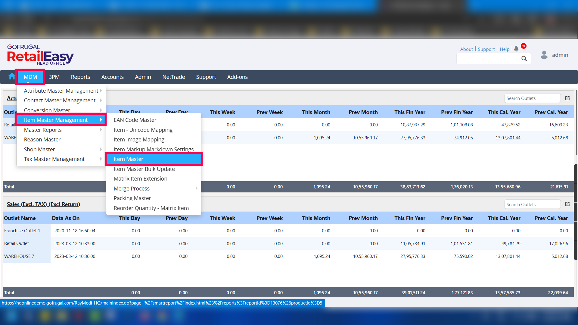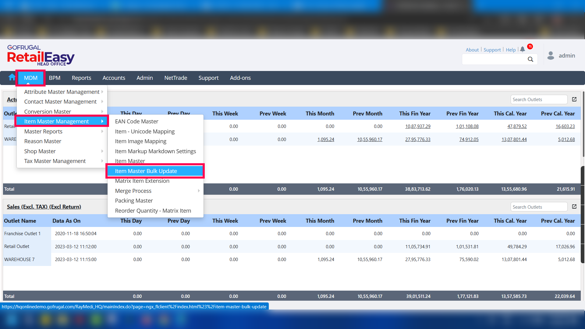 Step 1: Go to MDM > Item Master Management > Item Master Bulk Update