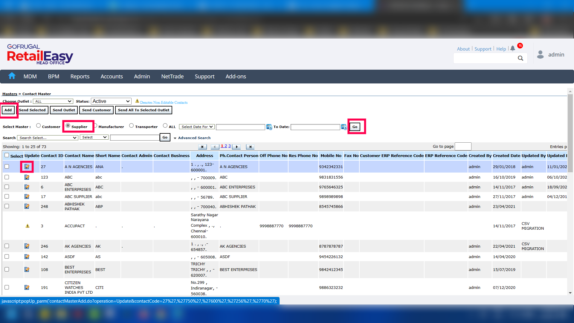 Step 2: Click on Add button to Add or click on Edit button to Edit the supplier details.