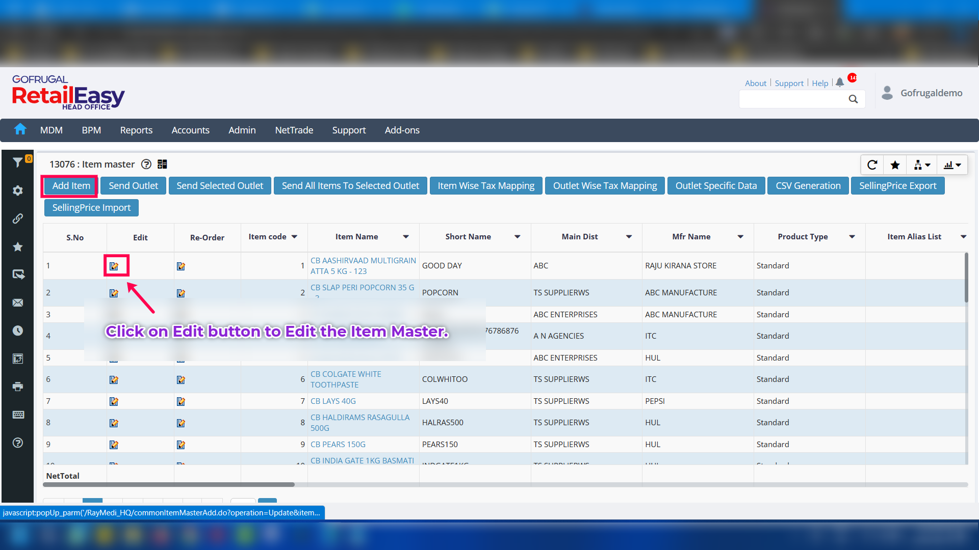 Step 2: Click on Edit button to edit the item or click on Add Item to add new item.