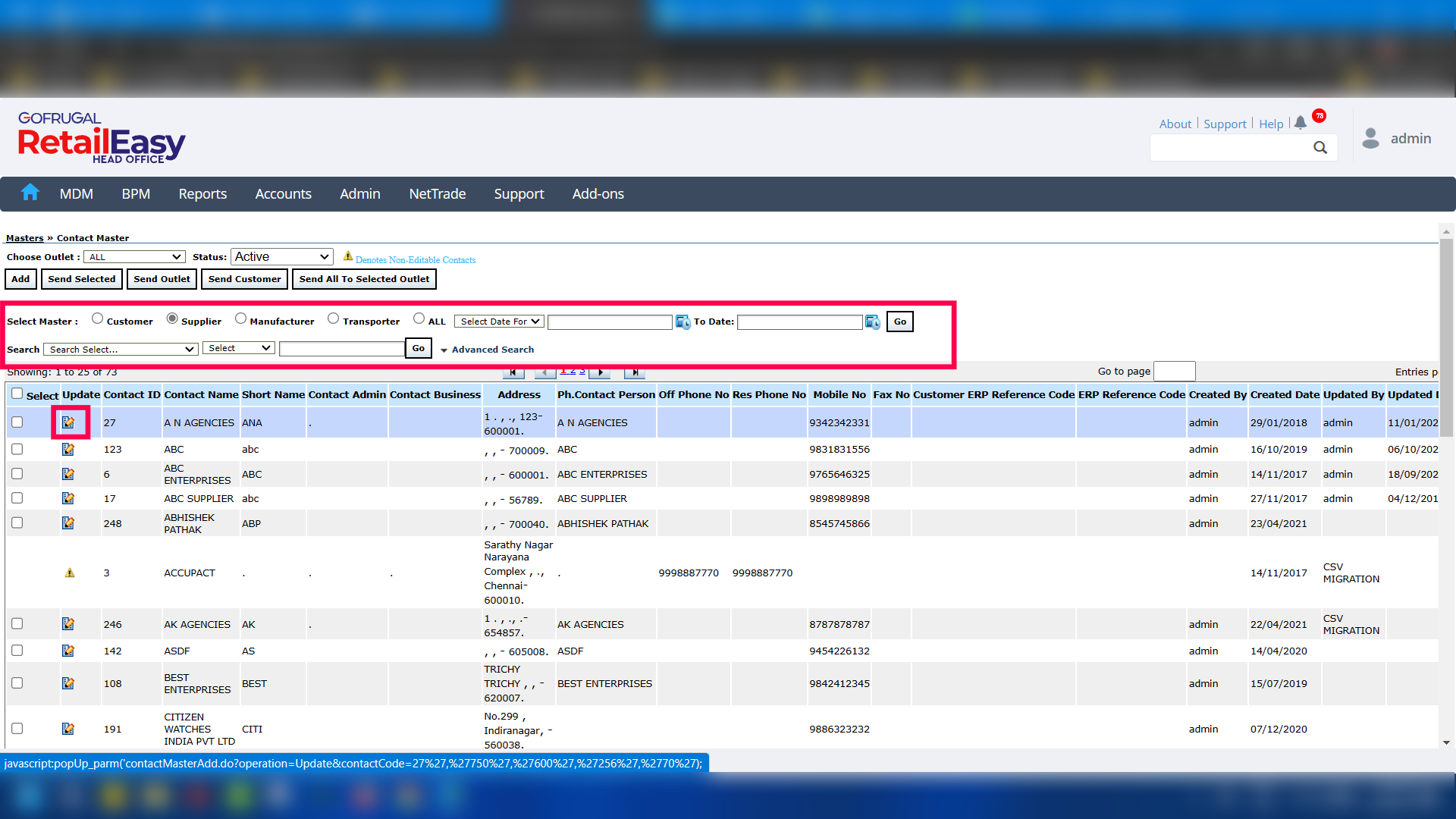 Step 1: Go to MDM > Contact Master Management > Contact Master Bulk Update.