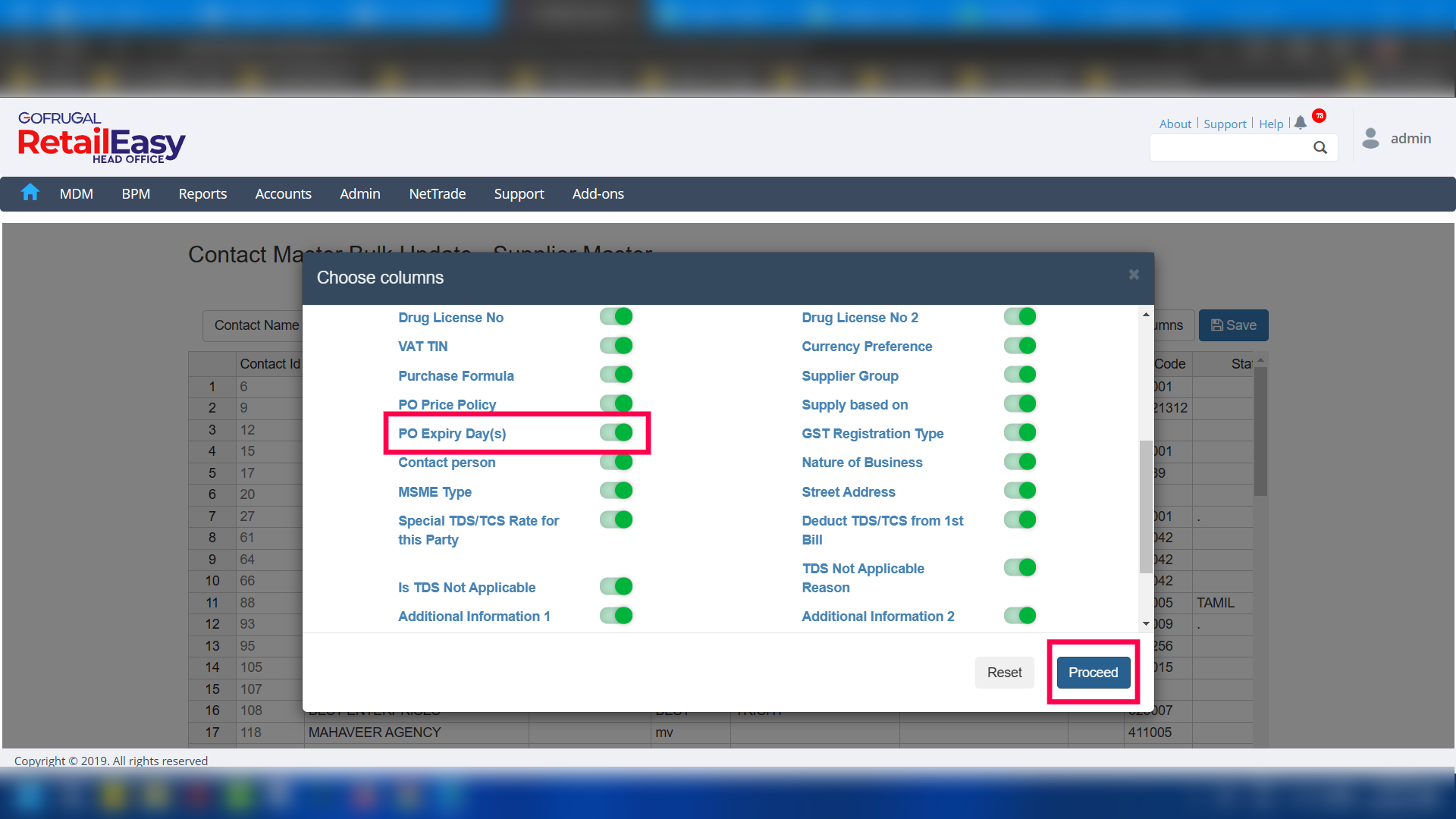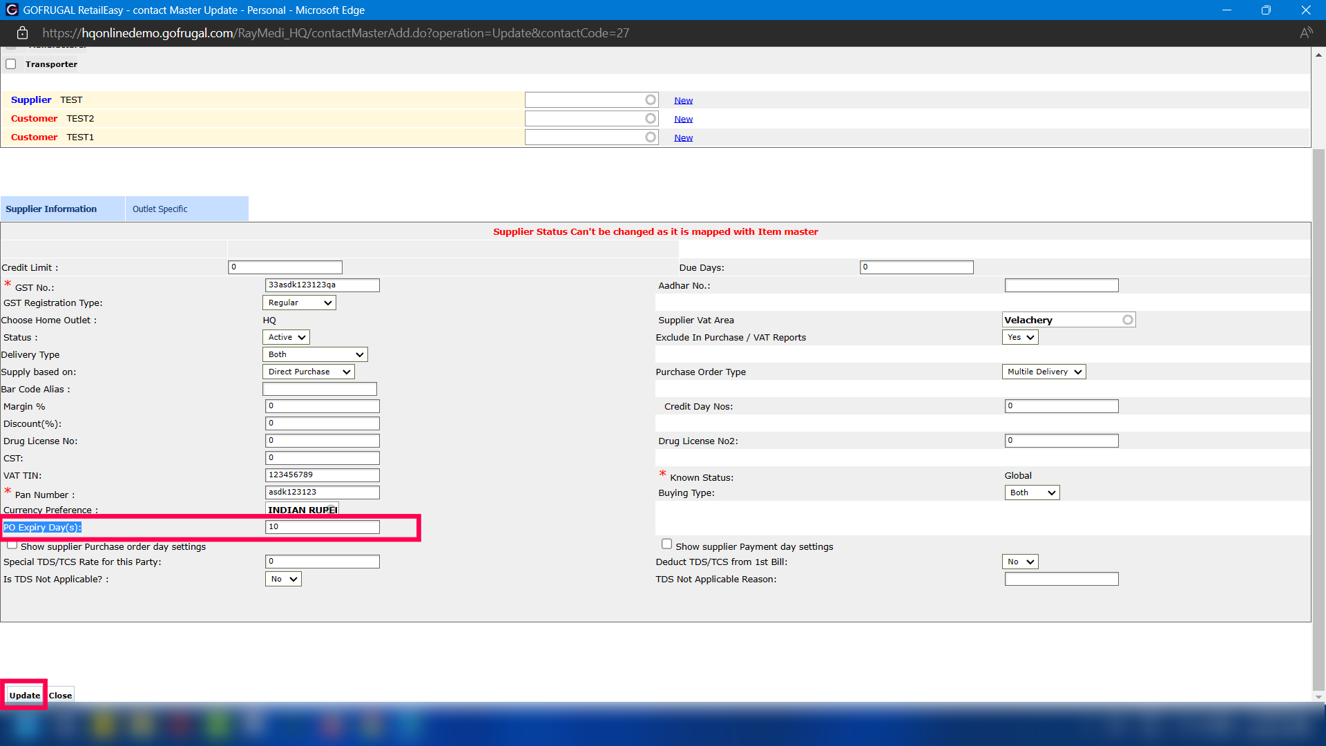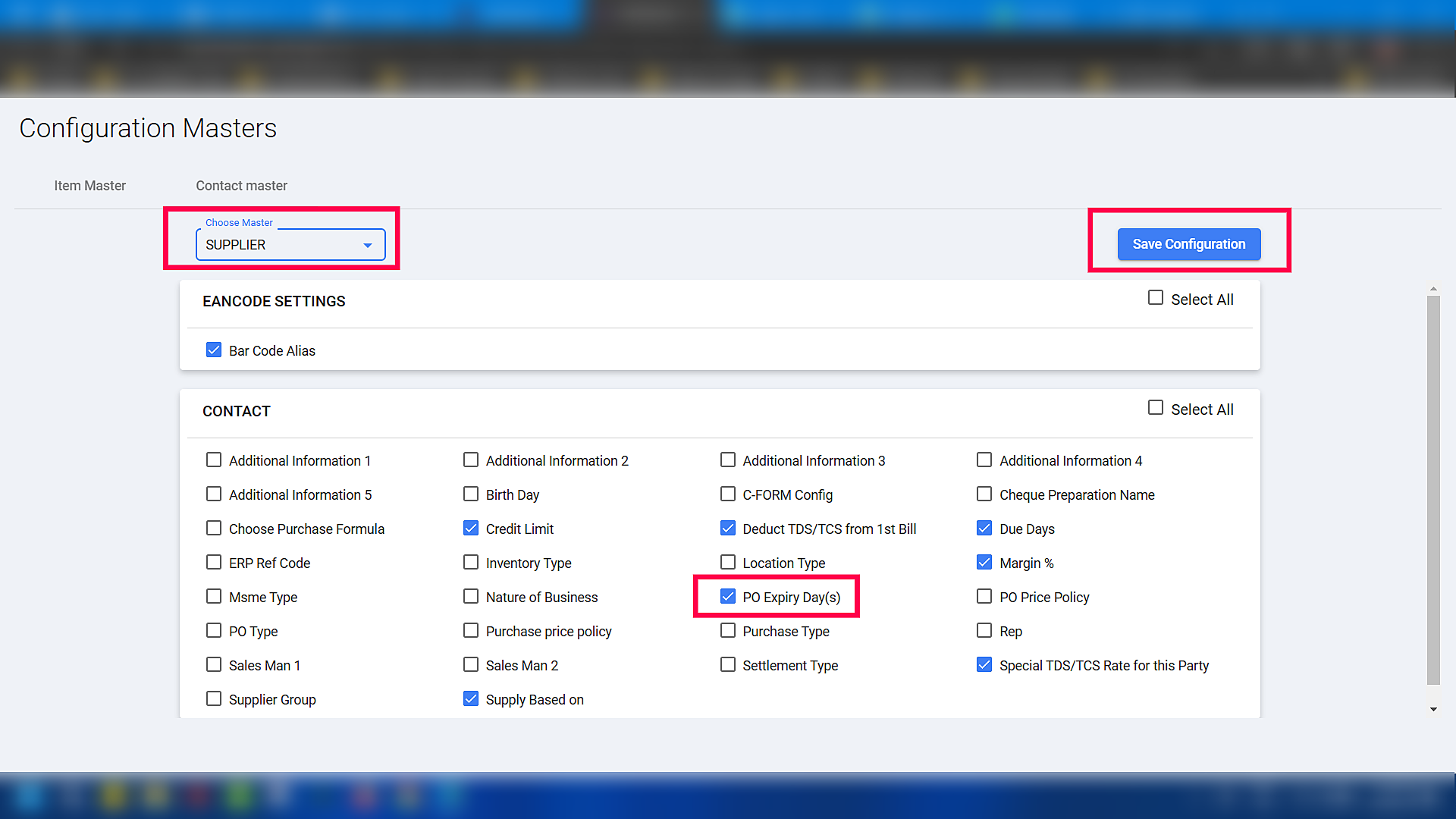*** Note: If the PO Expiry Day(s) options is not visible in the contact master, do the following steps to activate the same:
