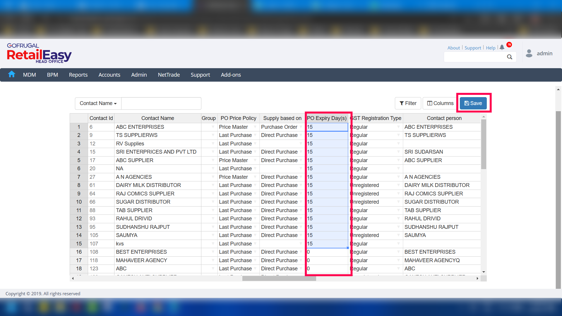 Step 5: Now locate the PO Expiry Day(s) column and put the desired days there. You can copy and paste the values across the column by just pressing Ctrl + C for copy and Ctrl + V for paste.