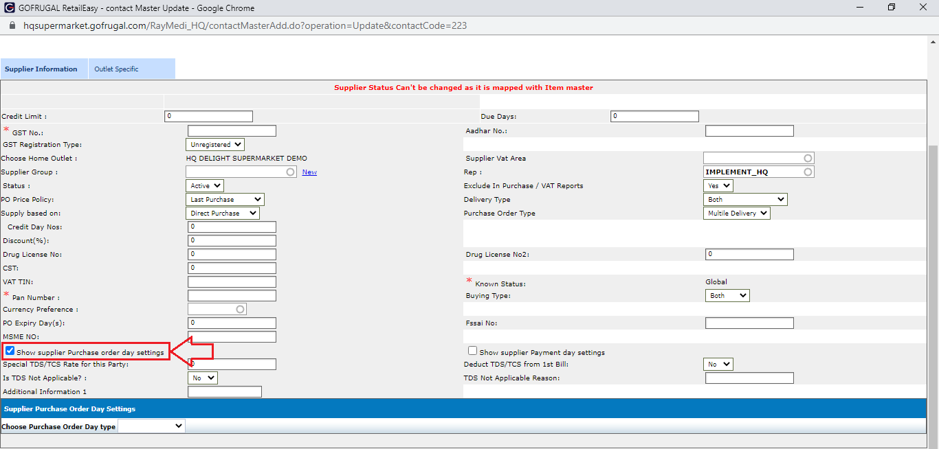 Using this Supplier calendar, we can simplify the reordering process for the suppliers come on specific days as well as for the suppliers coming on an everyday basis.