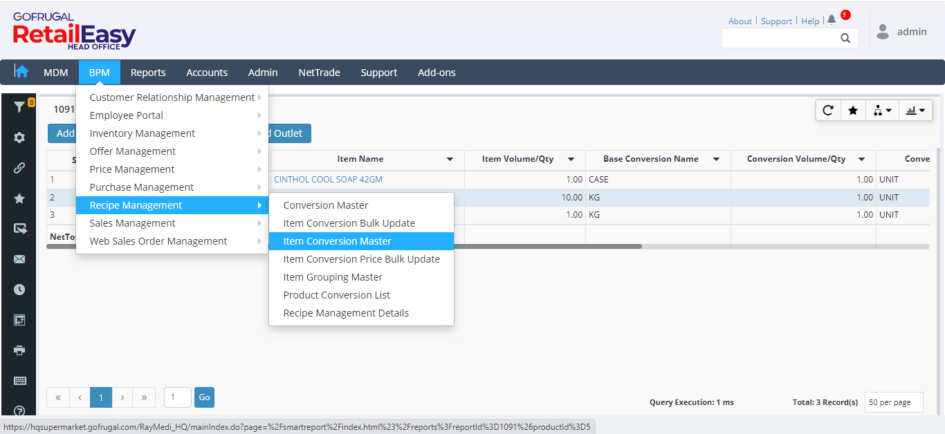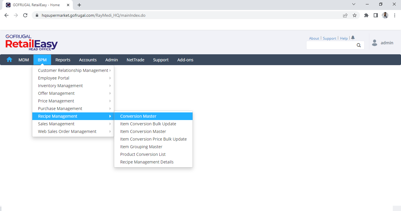 Step 1: Go to BPM > Recipe Management > Conversion Master