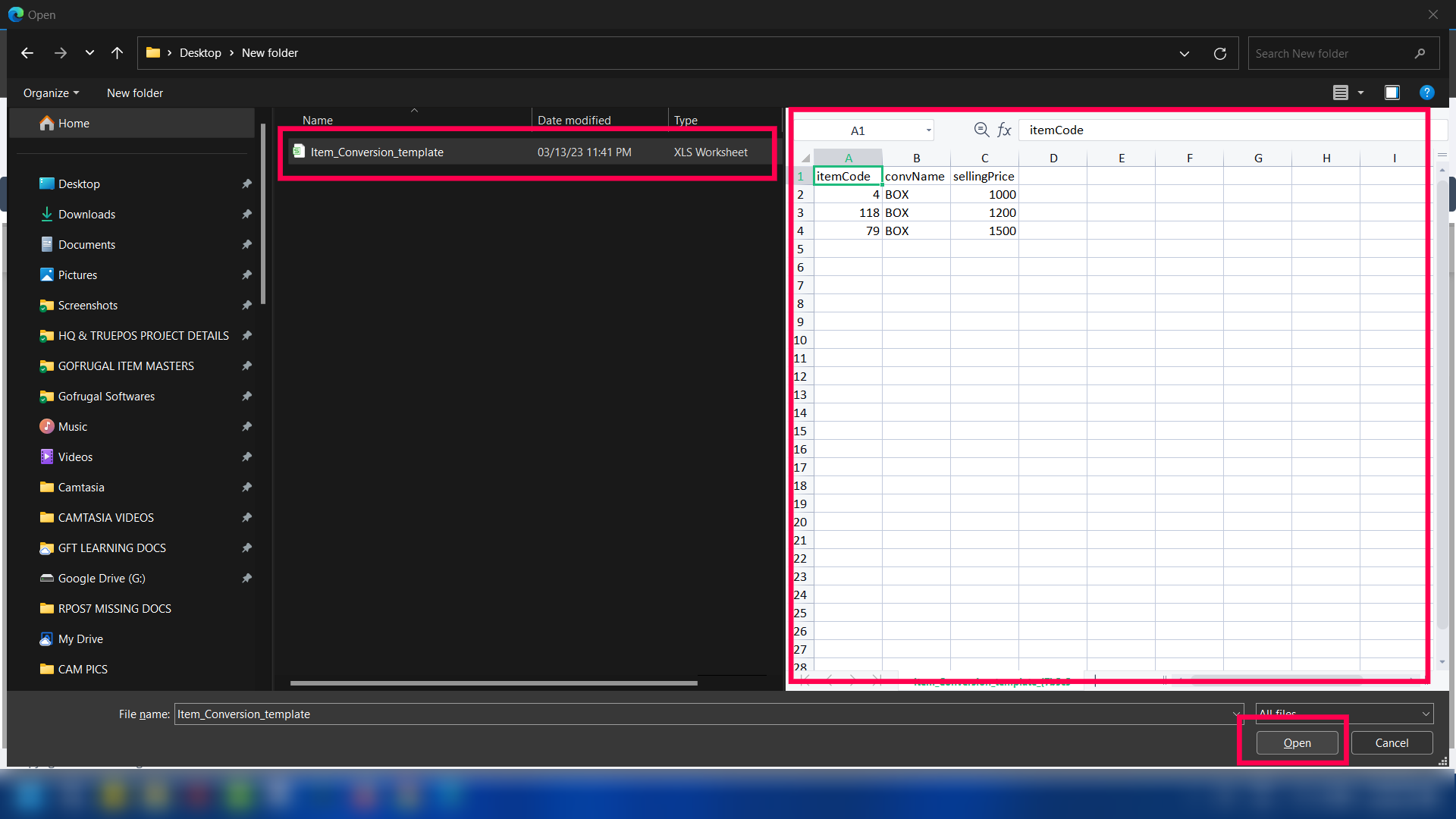 Step 6: Browse the date and click on Open to load the data.