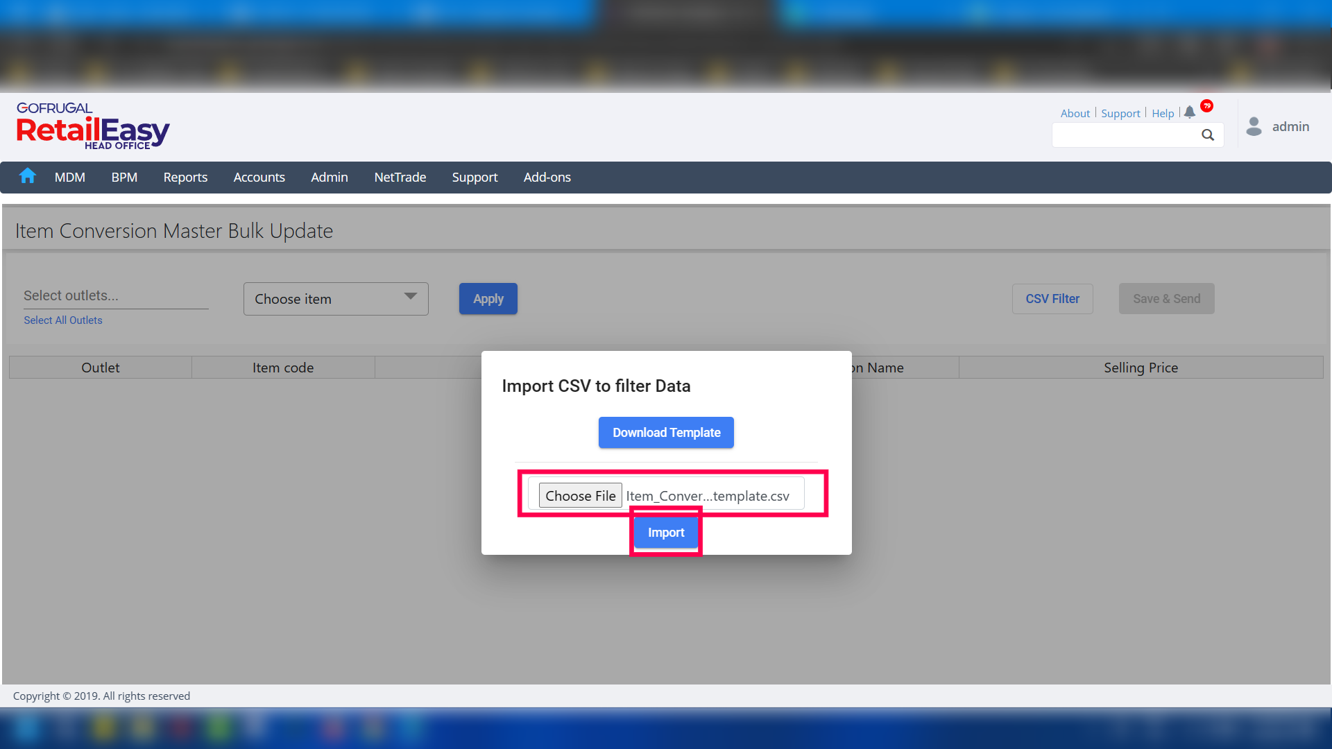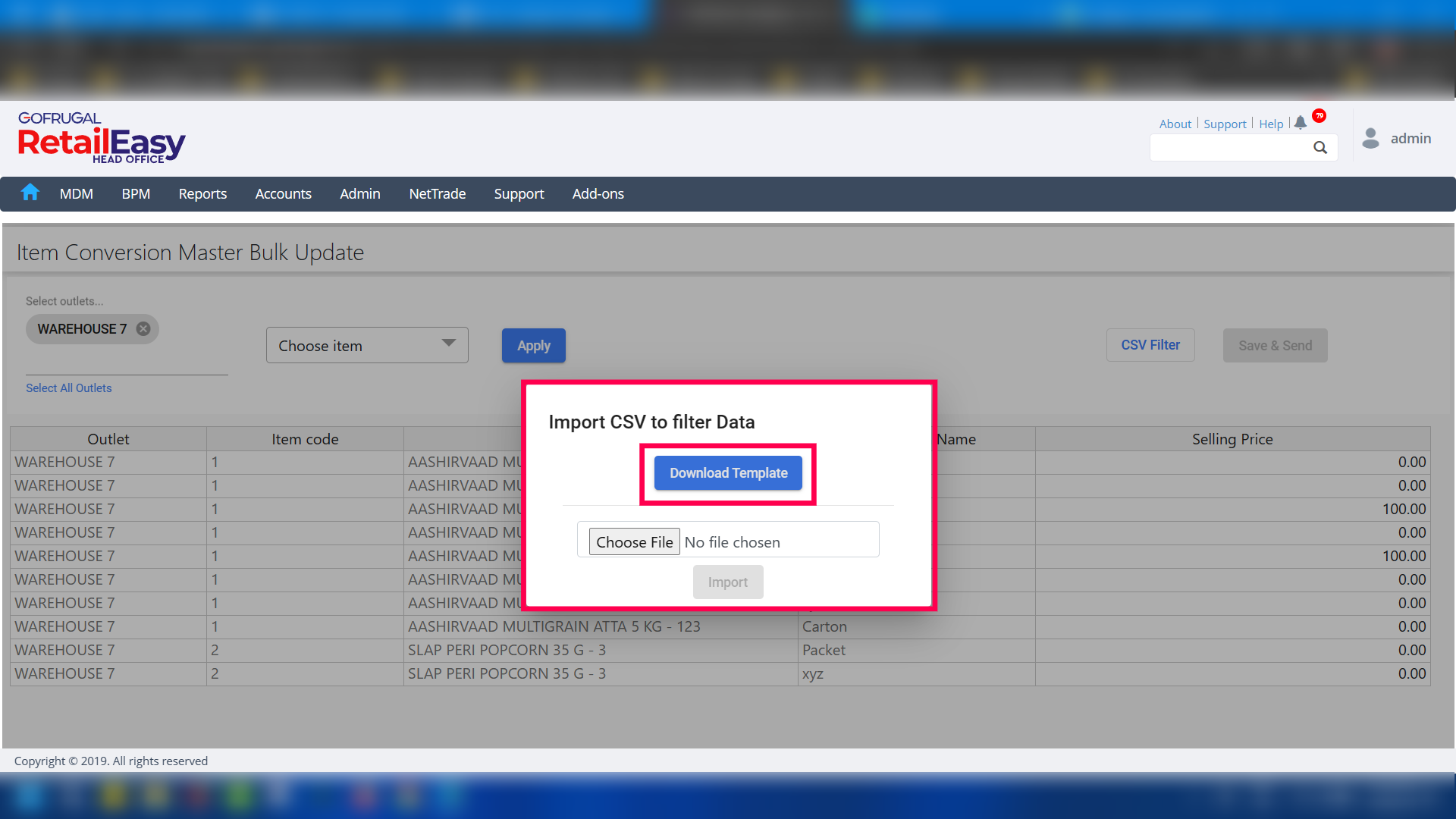 Step 4: Click on the CSV Filter to bring up the Import CSV to filter Data windows and click on the Download Template button to download the template file.