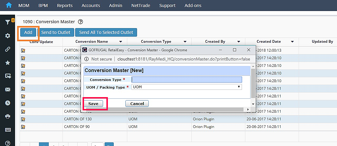 Step 2: Click on Add to add a new conversion or click on Edit to update an old conversion master.