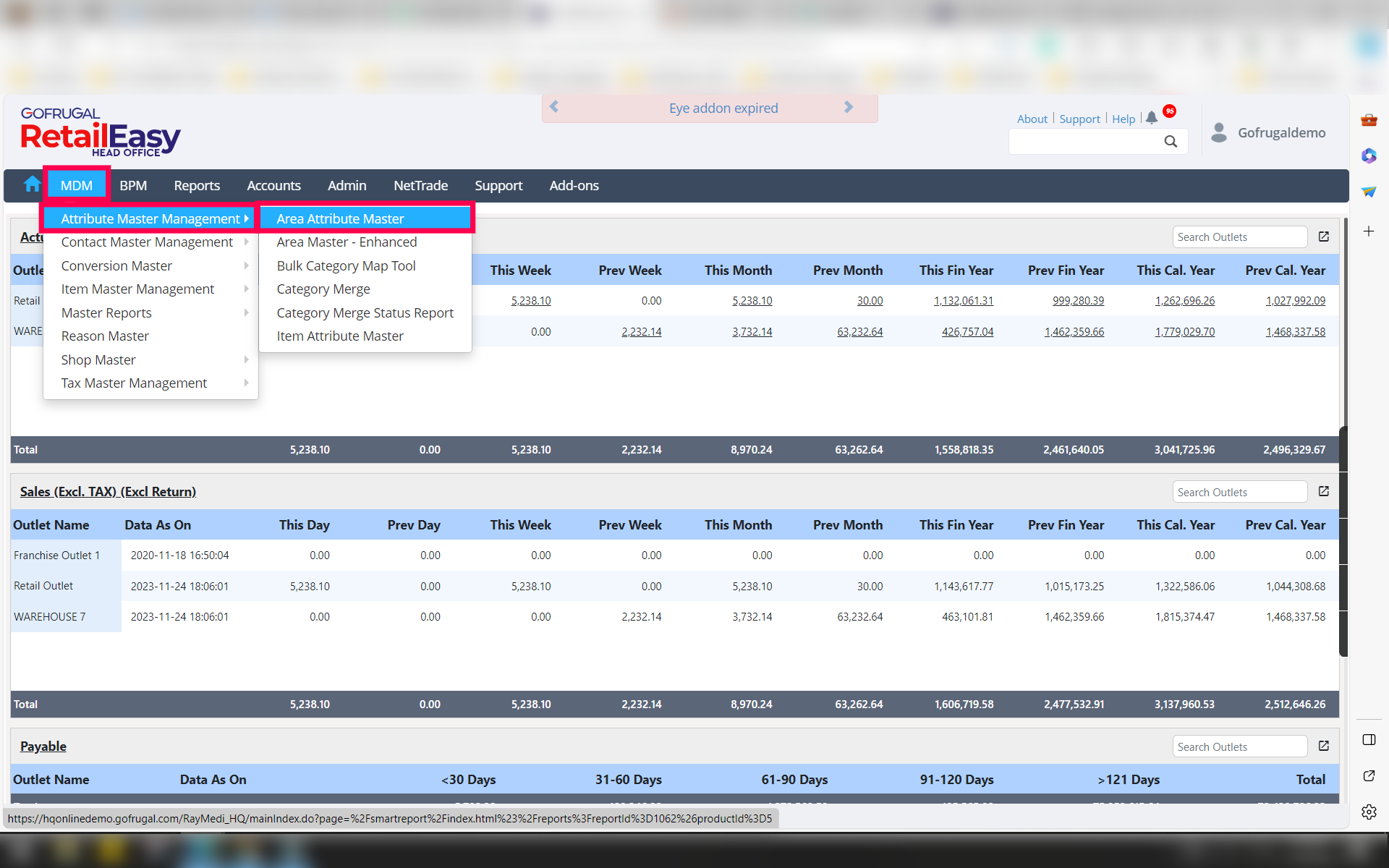 The Area Attribute Master in Gofrugal HQ allows you to define and manage attributes related to different areas or sections of your business. This could include details such as location-specific information, categorization, or any other relevant data.