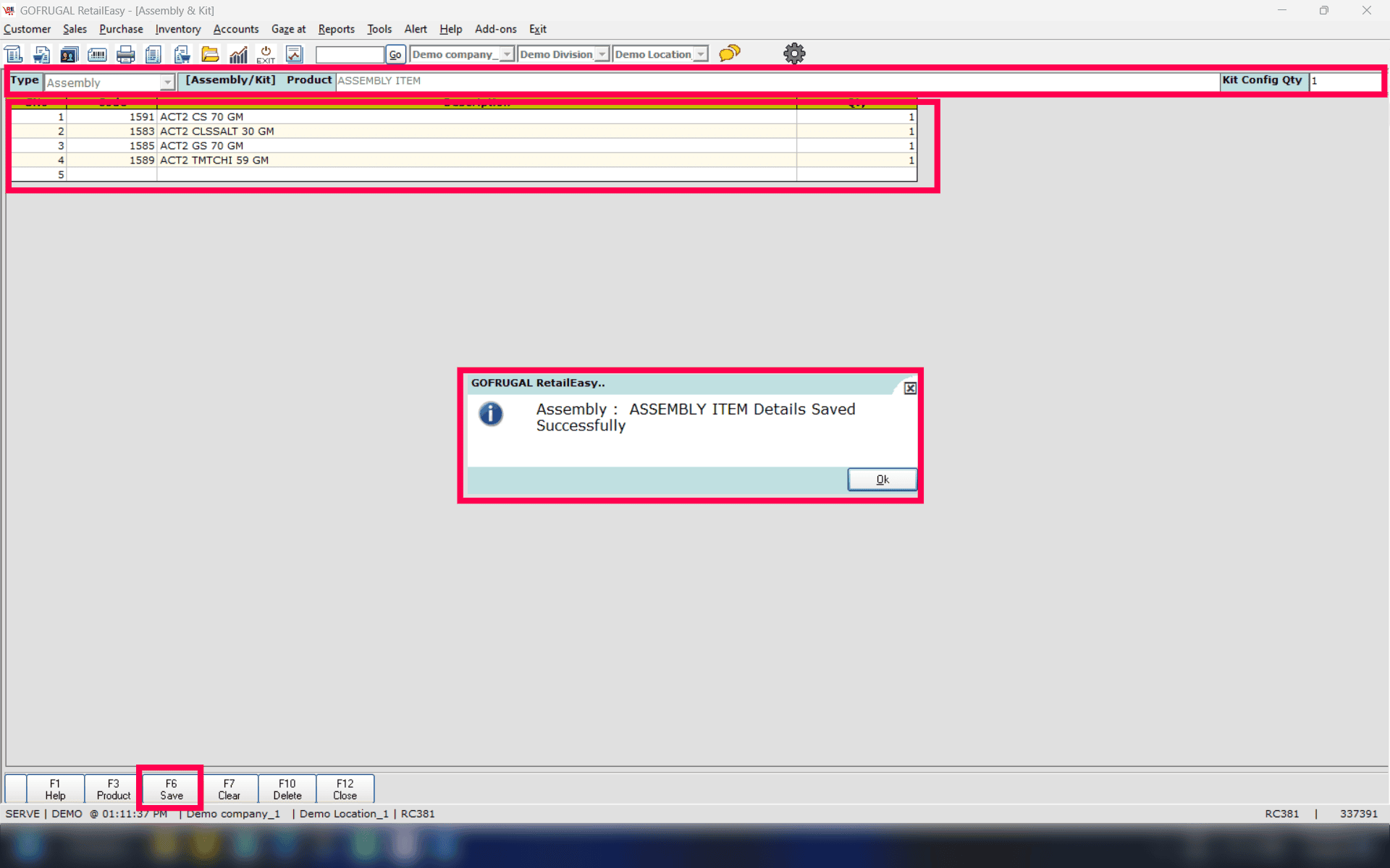 Step 3: Take the Assembly item and configure the products under the assembly item with their qty.